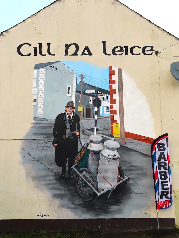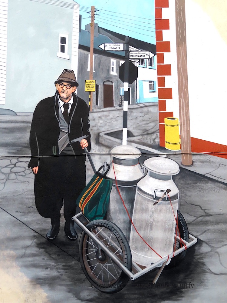 Kilnaleck local Frank Brook built the cart that he wheeled daily to the creamery. For more information about Frank, see this profile at AngloCelt of the artist, Colette Kearney (web).