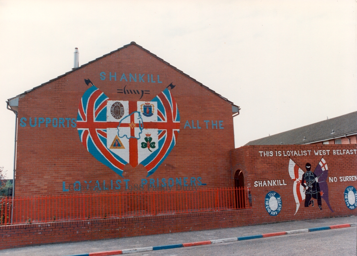 These are three of the murals painted in Percy Place, west Belfast, painted by Alan Skillen in 1984. For a gallery of all eleven piece, see the street’s Visual History page.