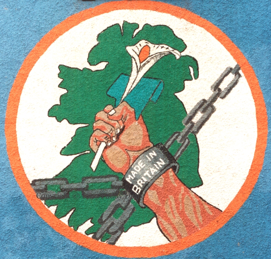 “Numerous foreign groups and delegations visited Ballymurphy and west Belfast during the troubles. I remember one meeting I was at in Conway Mill, I picked up a pamphlet with a drawing of a manacled fist. The caption read “Made in the USA.” So I just took the image and changed the slogan to “Made in Britain”.” (Painting My Community/An Pobal A Phéınteáıl – English-language version available for free)