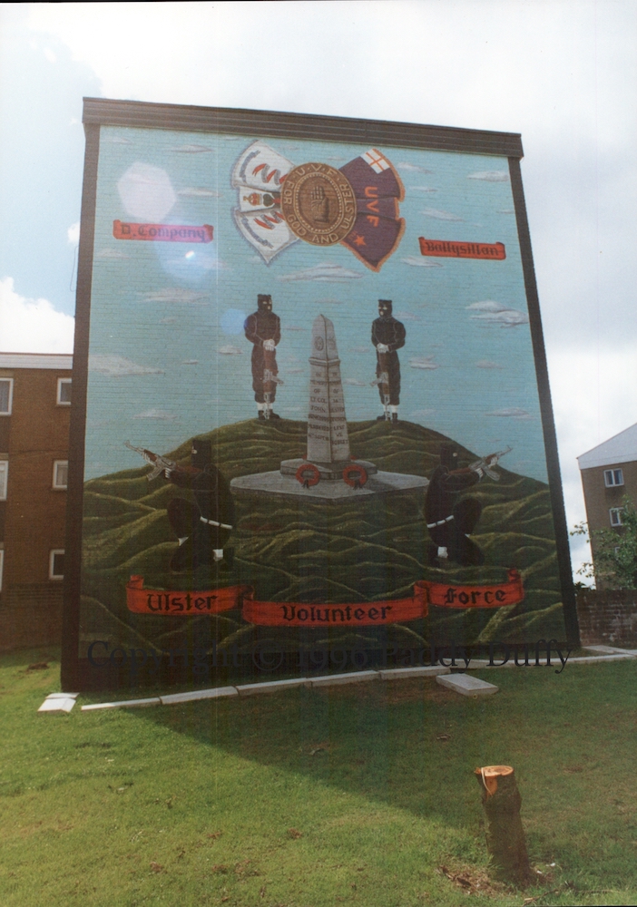 1996 Carousel War Or Peace — Hornbeam Walk, Dunmurry McFadzean & Miller —Cappagh Gdns, Belfast Still Undefeated —Woodstock Rd, Belfast Consolidate The Peace —Harvey Ct, Belfast Gertrude Star FB —Martin St, Belfast RHC — Severn St, Belfast Still Defending Ulster —Kenilworth Pl, Belfast Always A Little Further — Armitage Cl, Belfast Dee St UFF — Mersey St, Belfast UFF LPOW — High Green, Belfast WDA — Ohio St, Belfast Brian Robinson —Disraeli St, Belfast Trevor King — Disraeli St, Belfast Rocket Team On Tour —Snugville St, Belfast Resist Any Éire Involvement —Snugville St, Belfast No 5 Platoon A Coy UVF — Northland St, Belfast A Coy 1st Batt UVF —Canmore St, Belfast UVF C Coy 1st Batt —Carnan St, Belfast All Gave Some, Some Gave All — Bellevue St, Belfast UFF — Stroud St, Belfast Not For Glory —Roden St, Belfast UVF — N Circular Rd, Belfast Cloughfern UDA — Knockenagh Ave, Newtownabbey Cloughfern UDA — Knockenagh Ave, Newtownabbey Cloughfern Young Conquerors — Knockenagh Ave, Newtownabbey 36th Division —Cashel Cl, Newtownabbey 1st East Antrim UVF —Cloyne Cr, Newtownabbey Free Catalonia —Rossnareen Ave, Belfast Travellers —Rossnareen Ave, Belfast Mol An Óige —Whiterock Rd, Belfast King Nuada At Moy Tura — Whiterock Rd, Belfast Not All Traditions Deserve Respect — Falls Rd, Belfast History Is Written By The Winner — Oakman St, Belfast Children Of Lear —Crocus St, Belfast Gorta Mór Emigration —Crocus St, Belfast Cumann Na mBan —Hawthorn St, Belfast Féile An Phobail —Springfield Rd, Belfast Tom Williams —Kashmir Rd, Belfast Saoirse Askatasuna —Kashmir Rd, Belfast Release All POWs Now —Kinallen Ct, Belfast Celtic Warrior —Ardoyne Ave, Belfast Timeless Time —Ludlow Sq, Belfast The Mass Rock —Ardoyne Ave, Belfast The Hedge Row School —Ardoyne Ave, Belfast The Petrol Bomber —Lecky Rd, Derry No Consent, No Parade —Rossville St, Derry Bloody Sunday —Rossville St, Derry
