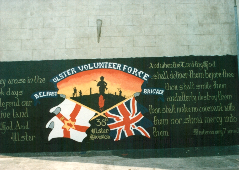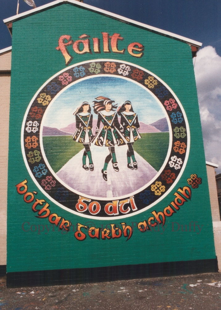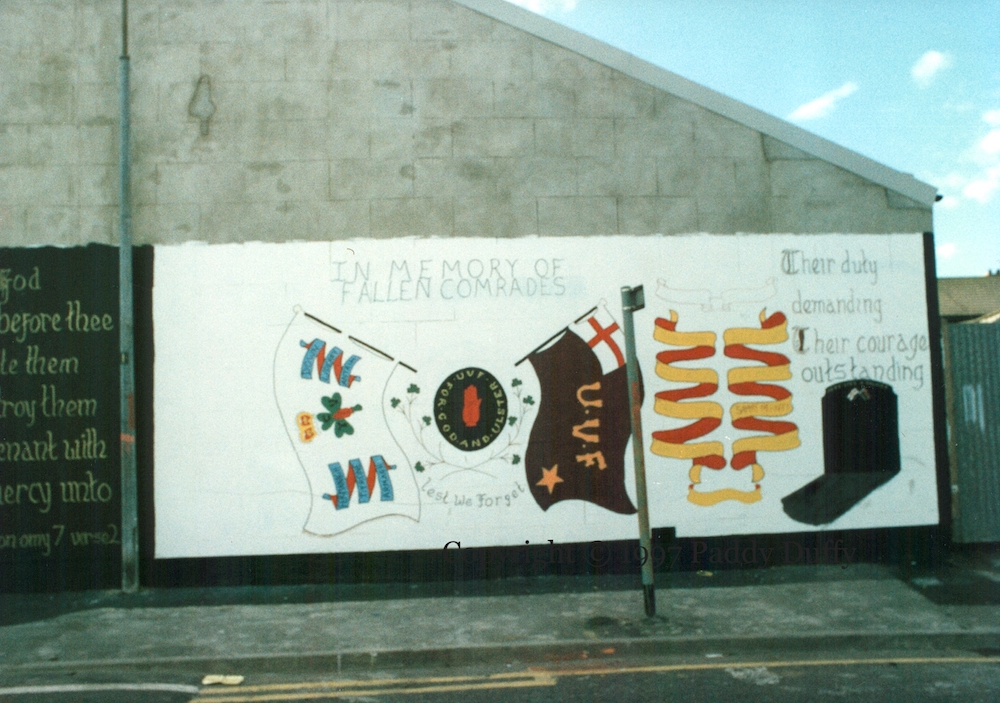 1997 Carousel Ulster’s Finest —Hollybank Pk, Newtownabbey UDA Funeral Volley —Boyne Ct, Belfast Kingsberry UFF —Kilburn St, Belfast 36th UVF — Blythe St, Belfast In Memory Of Fallen Comrades — Blythe St, Belfast The Ulster People’s Soldiers —St Patrick’s Walk, Belfast East Belfast UDA —Fraser Pass, Belfast McFadzean —Mt Vernon Pk, Belfast Joe McDonnell —Lenadoon Ave, Belfast Ireland’s Soldiers Of Freedom — South Link, Belfast A New Opportunity For Peace — Andersonstown Rd, Belfast No Plastic Bullets —Springhill Ave, Belfast Draoichláirseoirí An Chinn Bhaile — Springhill Ave, Belfast Llibertat Saoirse — Falls Rd/Fallswater St, Belfast Warriors 1 —Beechmount Ave, Belfast Warriors 2 —Beechmount Ave, Belfast Warriors 3 —Beechmount Ave, Belfast Warriors 4 —Beechmount Ave, Belfast Warriors 5 —Beechmount Ave, Belfast Warriors 6 —Beechmount Ave, Belfast Harpist —Beechmount Ave, Belfast Askatasuna 1 —Beechmount Gr, Belfast Askatasuna 2 —Beechmount Gr, Belfast Askatasuna 3 —Beechmount Gr, Belfast Askatasuna 4 —Beechmount Gr, Belfast Askatasuna 5 —Beechmount Gr, Belfast Eradication Of Poverty — Dunlewey St, Belfast New Life Tree —Northumberland St, Belfast Robert Emmet Commemoration — Havana Way, Belfast An Gorta Mór —Ardoyne Ave, Belfast Peace With Justice —Hurson Pk, Portadown Fáilte Go Dtí Bóthar Garbh Achaidh —Hurson Pk, Portadown Re-Route Sectarian Marches —Hurson Pk, Portadown Approved Orange Route —Dromara St, Belfast Nothing Has Changed —Ardoyne Ave, Belfast