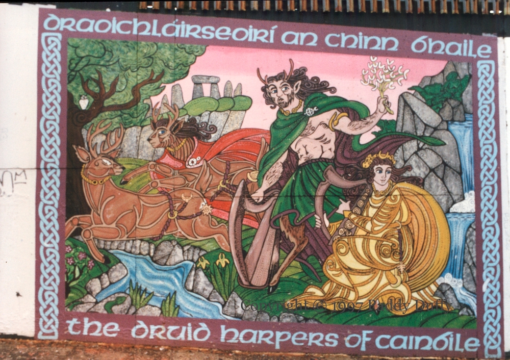 In Táın Bó Cúaılnge, the “sweet-mouth harpers of Caın Bıle” are also “druids, men of great cunning and great power of augury and magic.” They come to Medb and Aılıll to entertain them, carrying mistletoe by which they sing, but are mistaken as Ulster spies; the harpers turn themselves into deer to escape their pursuers, near the Lıa Mór (Great Stone) (Death Of Lethan).