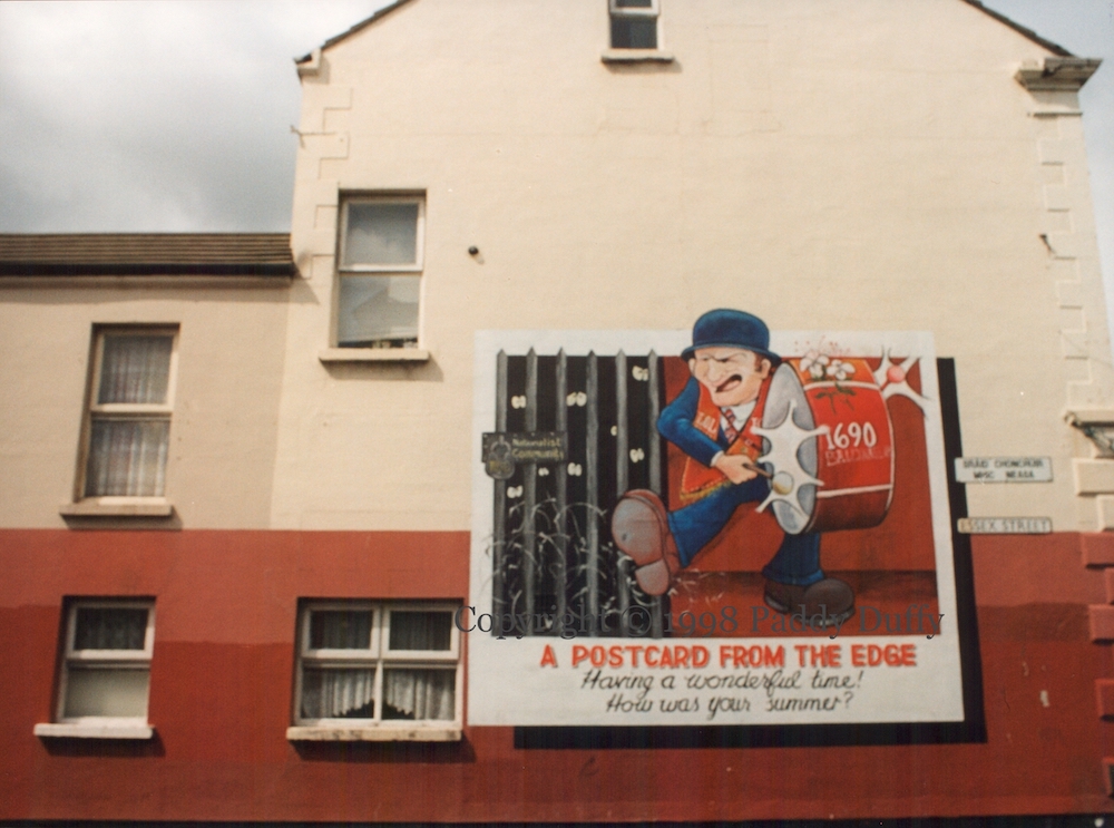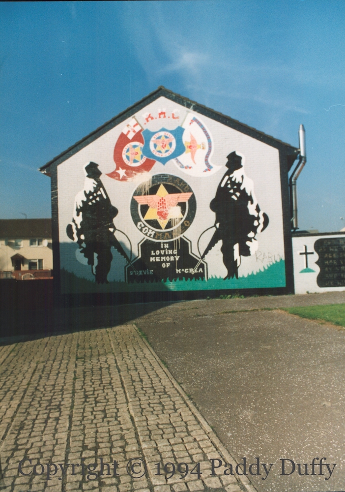 1998 Carousel Celtic Cross —Millview Ct, Belfast Mise Éire —Millview Ct, Belfast Release The POWs —Ludlow Sq, Belfast William Steel Dickson —New Lodge Rd, Belfast William Drennan —Ludlow Sq, Belfast McCrackens —New Lodge Rd, Belfast James Connolly —Berwick Rd, Belfast Remember The Ten —Berwick Rd, Belfast No Return To Stormont Rule — Ardoyne Ave, Belfast Ardoyne Fleadh —Ardoyne Ave, Belfast Éire —Mountpottinger Rd, Belfast Downey-Davison-Nolan — Friendly Way, Belfast A Postcard From The Edge — Essex St, Belfast Let’s Make It Work —Dromara St, Belfast Stand Off, Trade Off —Artana St, Belfast Give Way —Farnham St, Belfast An Gorta Mór —Whiterock Rd, Belfast No Bigots On Our Road —Springfield Rd, Belfast Ireland-Catalonia —Beechmount Ave, Belfast Gibraltar 3 —Hawthorn St, Belfast Cuba-Ireland —Shiels St, Belfast Gibraltar Martyrs —Stanhope St, Belfast Carrickhill Saoirse —Stanhope Dr, Belfast Ulster First Flute —Linfield Rd, Belfast Free Our Prisoners —Linfield Rd, Belfast UYM Sandy Row —Albion St, Belfast RHC A Coy — Glenwood St, Belfast Ring Of Peace —Waring St, Belfast McFadzean —Mt Vernon Pk, Belfast Stevie McCrea — Hopewell Cr, Belfast Marchant-King-Hamilton —Spiers Pl, Belfast Common Sense UDP —Bellevue St, Belfast