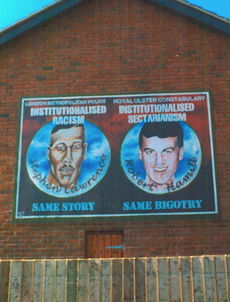 Catholic Robert Hamill was beaten to death by loyalists in Portadown in 1997 while police in an RUC land-rover looked on (WP).