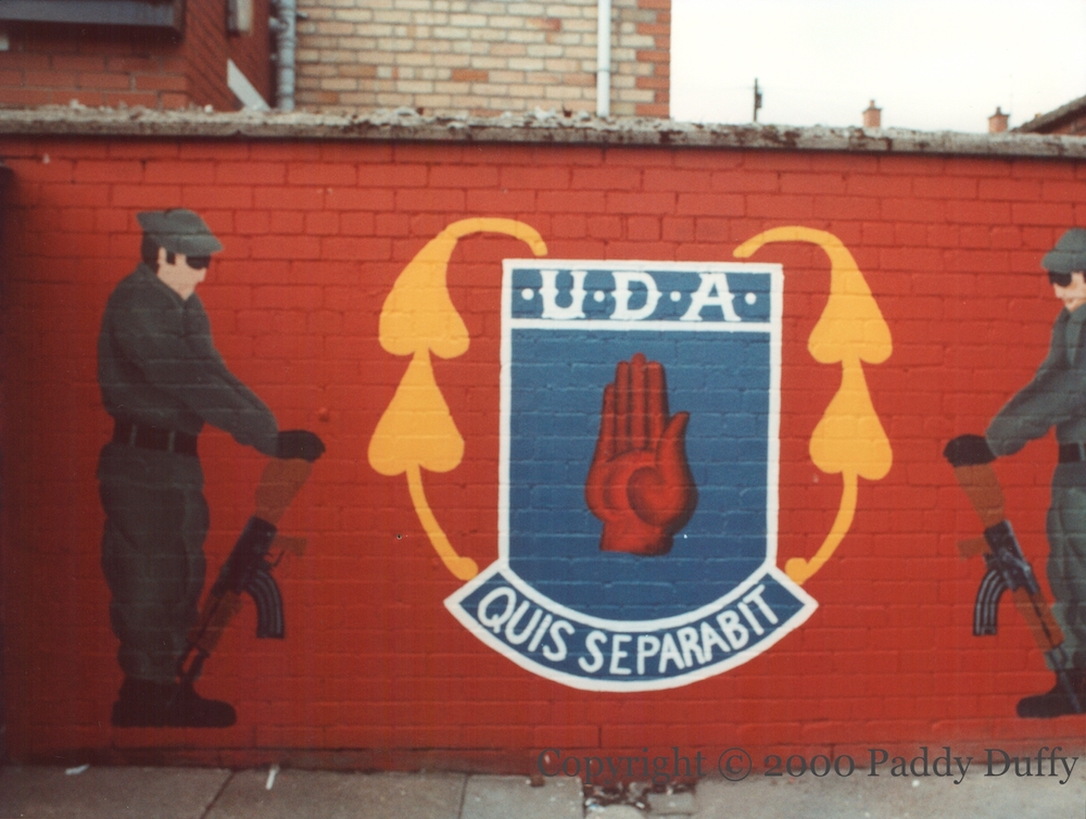 Both pieces are in Heather Street, Woodvale, west Belfast. Between the two are the words “Ulster Freedom Fighters” in large letters – see D00967.