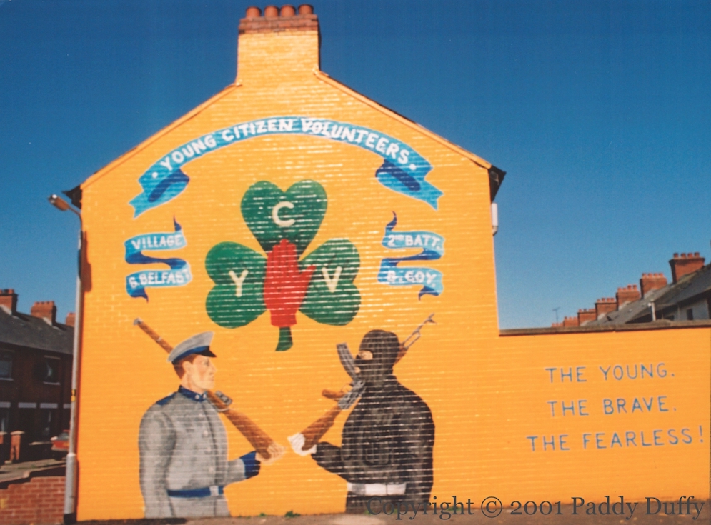 The Young, The Brave, The Fearless! 2001-05-012025-11-16Extramural Activity “Village, south Belfast, 2nd battalion, B company.” Young Citizen Volunteers of both the Home Rule (1912) and Troubles periods are shown shouldering rifles. Broadway, Village, south Belfast Click image to enlargeCopyright © 2001 Paddy DuffyT00636 Share this: Click to share on X (Opens in new window) X Click to share on Facebook (Opens in new window) Facebook Like Loading... Related