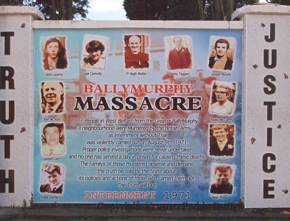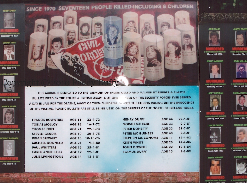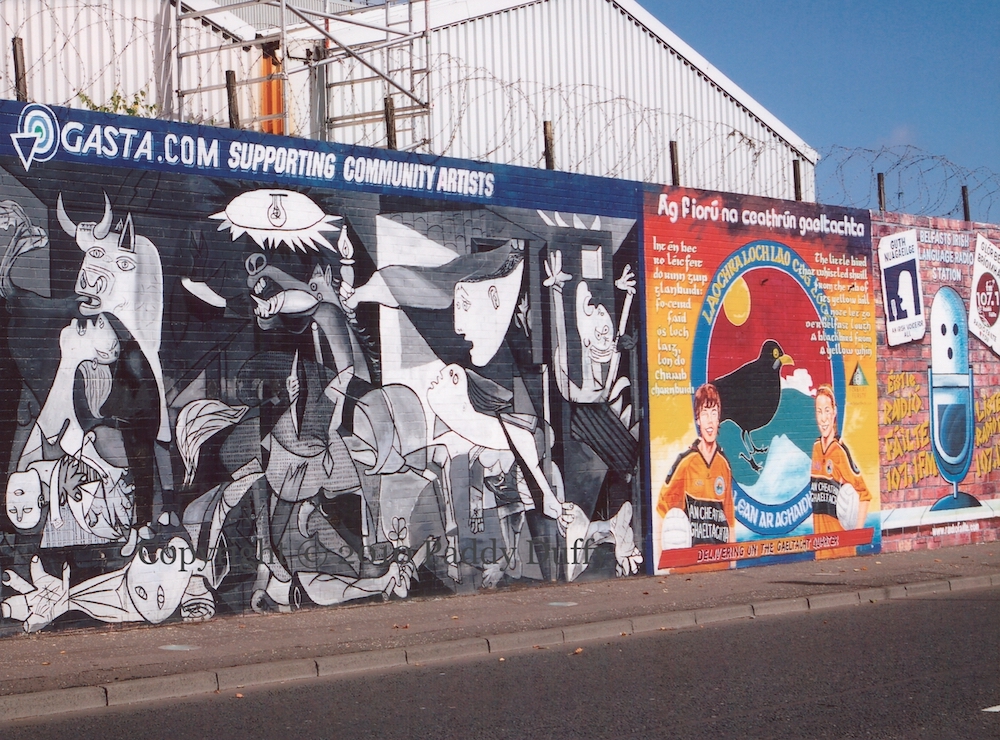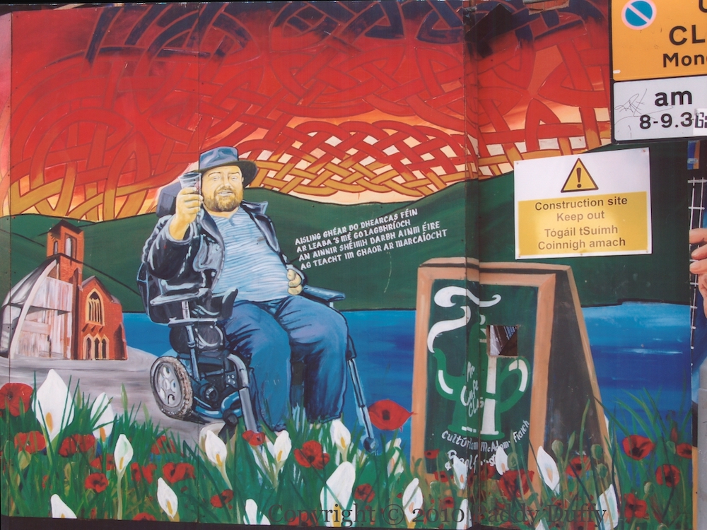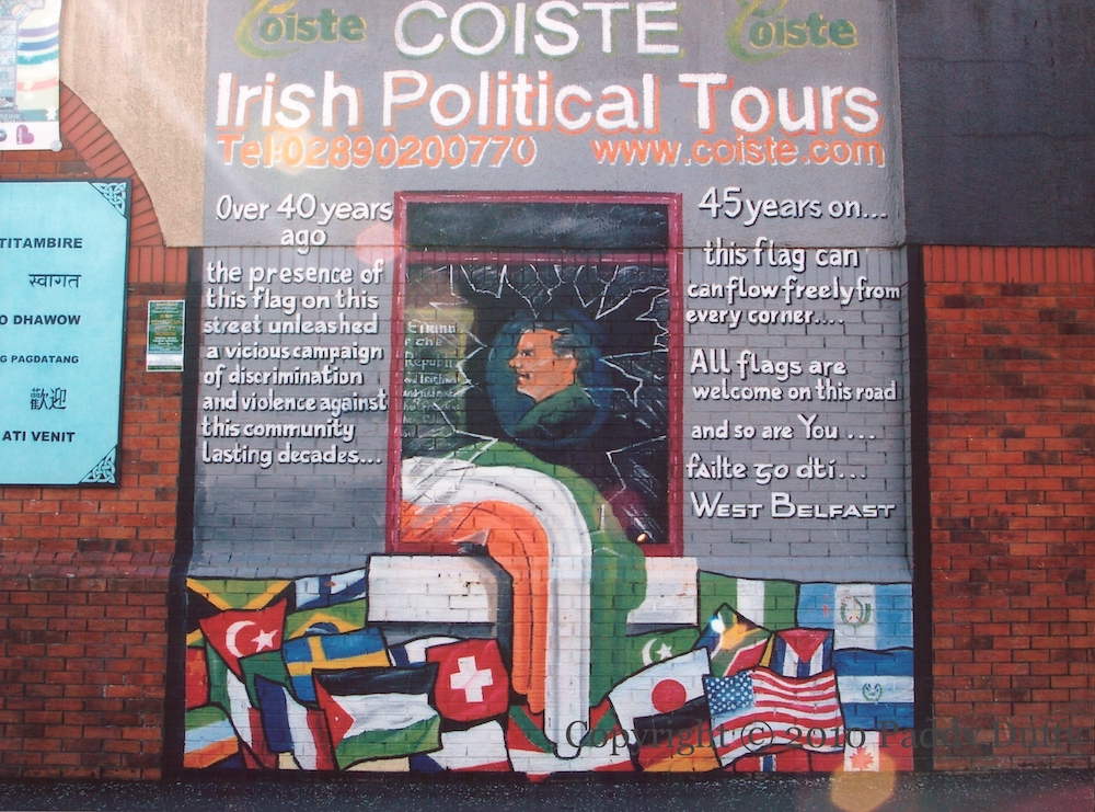 2010 Carousel WBTA Terminal —King St, Belfast Madden’s Bar —Berry St, Belfast Coiste Tours —Divis St, Belfast Oppose Racism —Divis St, Belfast Cuba Blockade —Divis St, Belfast Taxi Trax (purple) —Divis St, Belfast Falls Curfew —Divis St, Belfast Raidió Fáilte —Divis St, Belfast Laochra Loch Lao —Divis St, Belfast Guernica, Laochra Loch Lao, Raidió Fáilte — Divis St, Belfast Maghaberry Prisoners —Divis St, Belfast Barbarian Israeli Aggression —Divis St, Belfast Oil —Northumberland St, Belfast Amnesty Demand —Northumberland St, Belfast Have A Party For Peace — Northumberland St, Belfast Belfast Banksy —Northumberland St, Belfast Sean Garland —Northumberland St, Belfast Never Again —Bombay St, Belfast IRA C Coy Memorial —Bombay St, Belfast IRA C Coy Memorial —Bombay St, Belfast Fianna Éireann Centenary —Beechmount Ave, Belfast Éirí Amach —Beechmount Ave, Belfast Ballymurphy Massacre Victims — Springfield Rd, Belfast Ballymurphy Massacre —Beechmount Ave, Belfast Plastic Bullets —Beechmount Ave, Belfast Portraits Of Victims —Beechmount Ave, Belfast Portraits Of Victims —Beechmount Ave, Belfast Not Spain, Not France —Clowney St, Belfast Blanketmen —Clowney St, Belfast Fáilte Feirste Thiar —Nansen St, Belfast Patrick —Cultúrlann, Belfast Swans —Cultúrlann, Belfast Ceol —Cultúrlann, Belfast Salmon —Cultúrlann, Belfast McAdam —Cultúrlann, Belfast Gearóid —Cultúrlann, Belfast Nuachtáin —Cultúrlann, Belfast Books —Cultúrlann, Belfast O’Fiaich —Cultúrlann, Belfast Cogadh Síocháin —Cultúrlann, Belfast Dancers —Cultúrlann, Belfast Bulls —Cultúrlann, Belfast SF Unity —Falls Rd, Belfast Pearse Jordan —Falls Rd, Belfast Hunger Strikers —Falls Rd, Belfast Fianna Éireann —Falls Rd, Belfast IRSP —Glen Rd, Belfast First Dáil —Glen Rd, Belfast Finucane —Glen Rd, Belfast Askatasuna —Glen Rd, Belfast Hunger Strikers —Rockmore St, Belfast 1798 —South Link, Belfast Caoimhín Mac Brádaigh —South Link, Belfast We Too Are Strong —South Link, Belfast Ballymurphy Massacre —Springfield Rd, Belfast Ballymurphy Massacre —Springfield Rd, Belfast Springhill-Westrock Massacre — Springfield Rd, Belfast Women In Struggle —Dungloe Cr, Belfast Cú Chulainn —Lenadoon Ave, Belfast Julie Livingstone —Glenveagh Dr, Belfast Gibraltar 3 —Jasmine Corner, Belfast Hunger Strike 29th Anniversary — Twinbrook Rd, Belfast Sands Volley —Twinbrook Rd, Belfast Celtic FC —Friendly St, Belfast Building An Ireland Of Equals —Oceanic Ave, Belfast Greyhound —Edgar St, Belfast