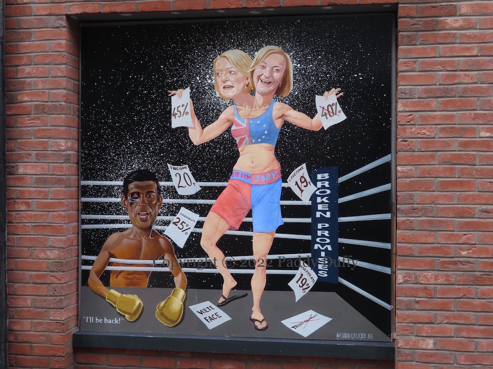 Truss vs. Sunak — Hill St, BelfastSword Fight — Hill St, BelfastPast Masters — Hill St, BelfastLobster Chef — High St Ct, BelfastHands — Kent St, BelfastLyra — Kent St, BelfastManbird — Kent St, BelfastBelle Of Belfast City — Kent St, BelfastKnight — Kent St, BelfastGirl — Kent St, BelfastRed Girl — Kent St, BelfastPhil Lynott — Kent St, BelfastEye — Kent St, BelfastAnubis — Kent St, BelfastLaser Eyes — Kent St, BelfastSide Face — Kent St, BelfastFace — Kent St, BelfastPeelers — Kent St, BelfastCockatoo — Kent St, BelfastHeart — Union St, BelfastRiver Of Sludge — Union St, BelfastSunglasses — Union St, BelfastSnake GIrl — Union St, BelfastGirl — Union St, BelfastUnderwater — Union St, BelfastSmoker — Union St, BelfastRu Paul — Little Donegall St, BelfastHalf Face — Library St, BelfastPuffins — Kent St, BelfastWoman — Kent St, BelfastFuck Racism — Union St, BelfastCartoon — Union St, BelfastWoman With Parrot — Gresham St, BelfastHands Over Face — North St, BelfastNo See, No Do — North St, BelfastFox North St, BelfastVenus North St, BelfastUnited Irishmen 1 — Waring St, BelfastUnited Irishmen 2 — Waring St, BelfastUnited Irishmen 3 — Waring St, BelfastRing Of Peace — Waring St, BelfastHarland & Wolf — Hill St, BelfastFranklin & Best — Hill St, BelfastBird And Snake — Talbot St, BelfastBlurry Eyed — Talbot St, BelfastUnions — Commercial Ct, BelfastYou Beaut — North St, BelfastTruss Volte Face — Hill St, BelfastPink Lips — Donegall St, BelfastBeastie Boys — Donegall St, BelfastAndrew Weatherall — Donegall St, BelfastThe Chase — Donegall St, BelfastPandora’s Jar — Donegall St, BelfastSon Of Protagoras — Off Talbot St, BelfastLost In Simulation — Donegall St, BelfastShip Of Fools — Hill St, BelfastTrapeze — Donegall St, BelfastBelfast + Eyes — North St, BelfastEyes — North St, BelfastPurple Curls — North St, BelfastHeart On Head — North St, BelfastTattoo — North St, BelfastColoured Faces — Carrick Hill, BelfastSleeping GIrl — Queen St, Belfast