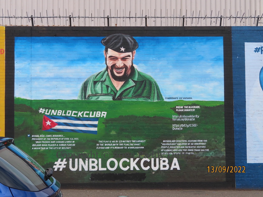 “Miguel Díaz-Canel Bermudez … President of the Republic Of Cuba 11.6.2021. ‘Irish friends and Cubans living in Ireland have placed a Cuban flag on a mountain in the city of Belfast. The flag is 46 by 23 metres, the largest in the world. With the flag [is] the giant slogan and it’s [sic] demand to #UnblockCuba. [This is a] Moving and beautiful gesture from the “solidarious” children of an admirable people, [a] dignified and patriotic gesture of Cubans who are far away. Thank you for your unshakable solidarity …”