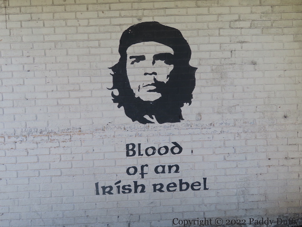 Blood Of An Irish Rebel 2022-10-072024-07-27Extramural Activity Here is a New Lodge stencil of the iconic Che over his father’s words: “[In my son’s veins flowed the] Blood of an Irish rebel”. Click image to enlargeCopyright © 2022 Paddy DuffyT01039 Share this: Click to share on X (Opens in new window) X Click to share on Facebook (Opens in new window) Facebook Like Loading... Related