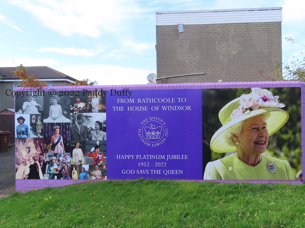 “From Rathcoole to the house of Windsor – happy platinum jubilee 1952-2022. God save the Queen.”