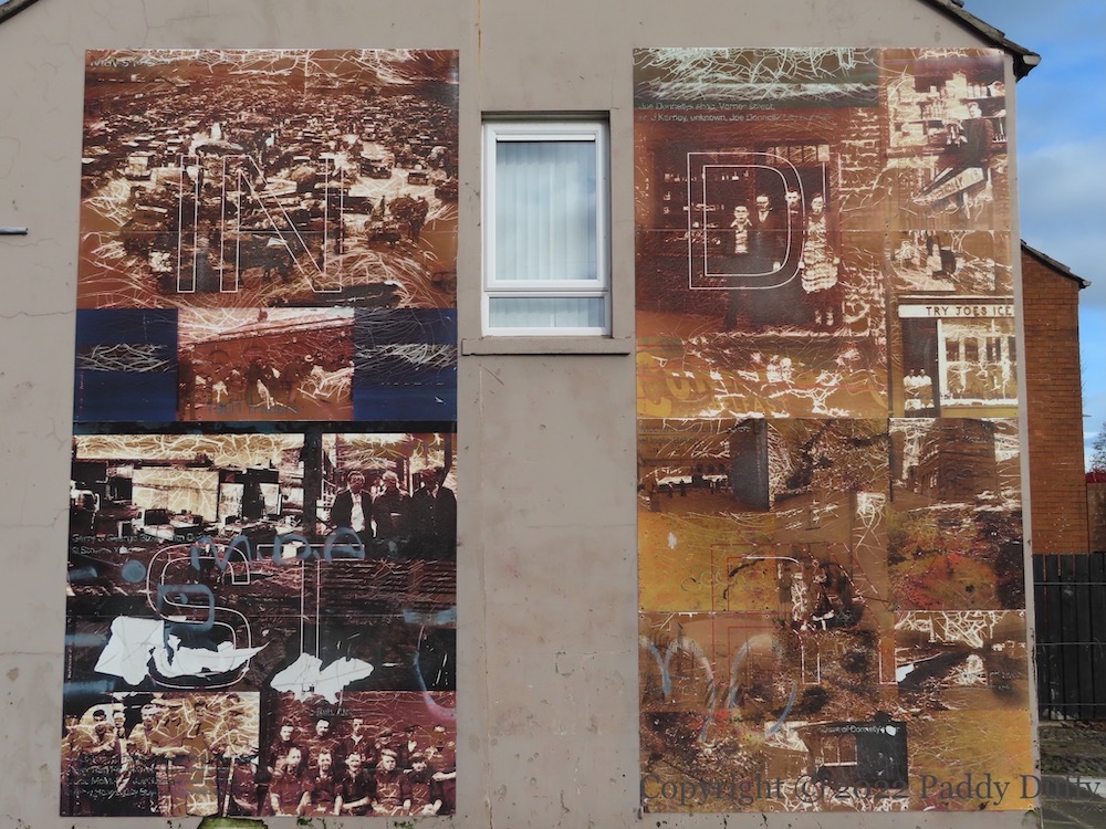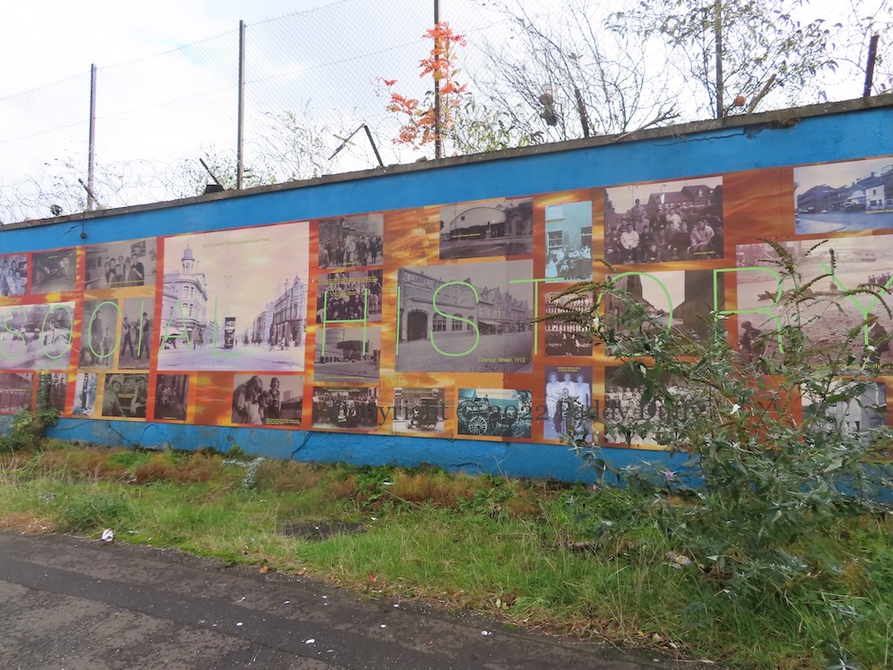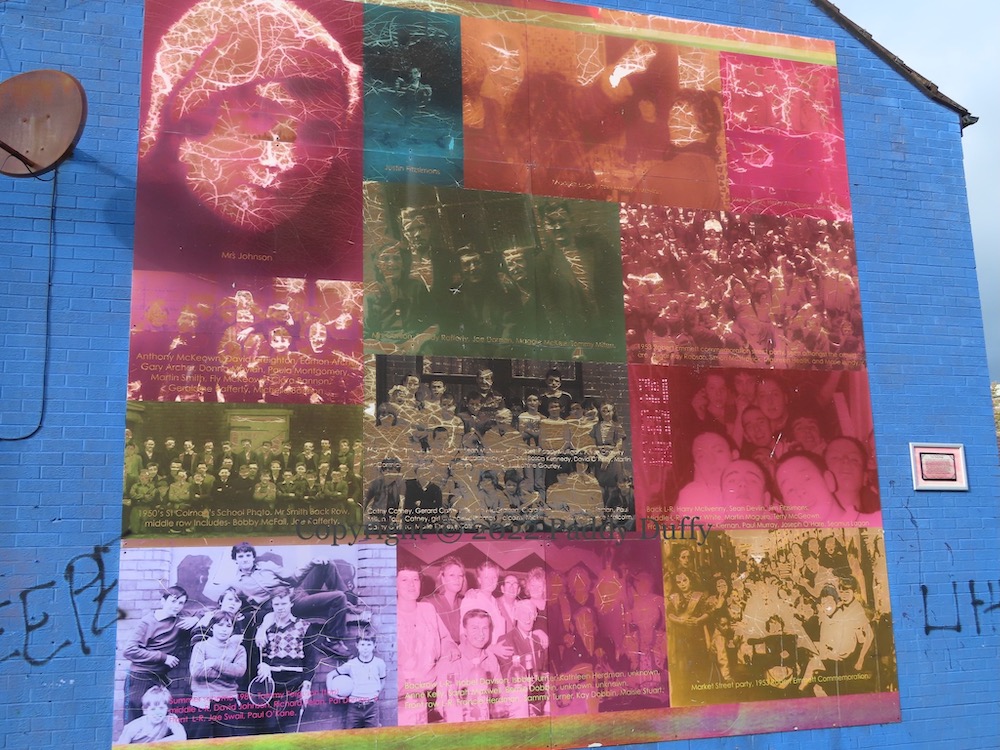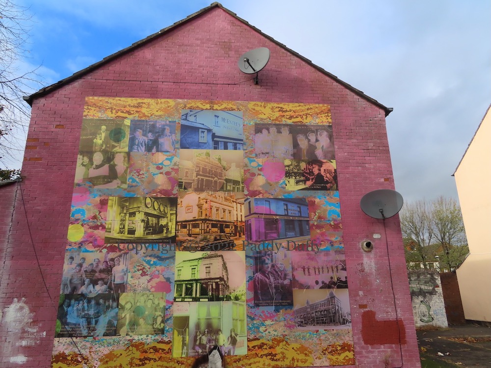 Artist Raymond Henshaw produced a series of boards in 2008 and 2009, with support from the Arts Council, depicting the Markets area in the good old (i.e. pre-Troubles) days. Above are the bars of the Markets and below ‘industry’, ‘social’ and ‘social history.