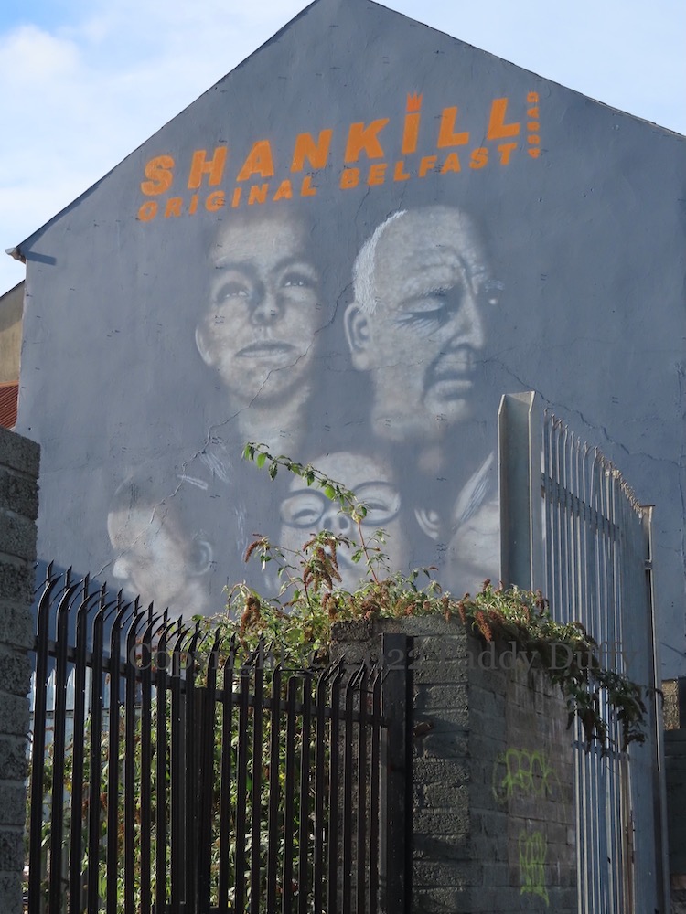 The second version of the “Original Belfast” mural “celebrates the contribution of people across the Greater Shankill who work with children and young people” including Sam Drake from the lower Shankill community centre (GSWF). For the previous version, see The Original Belfast.