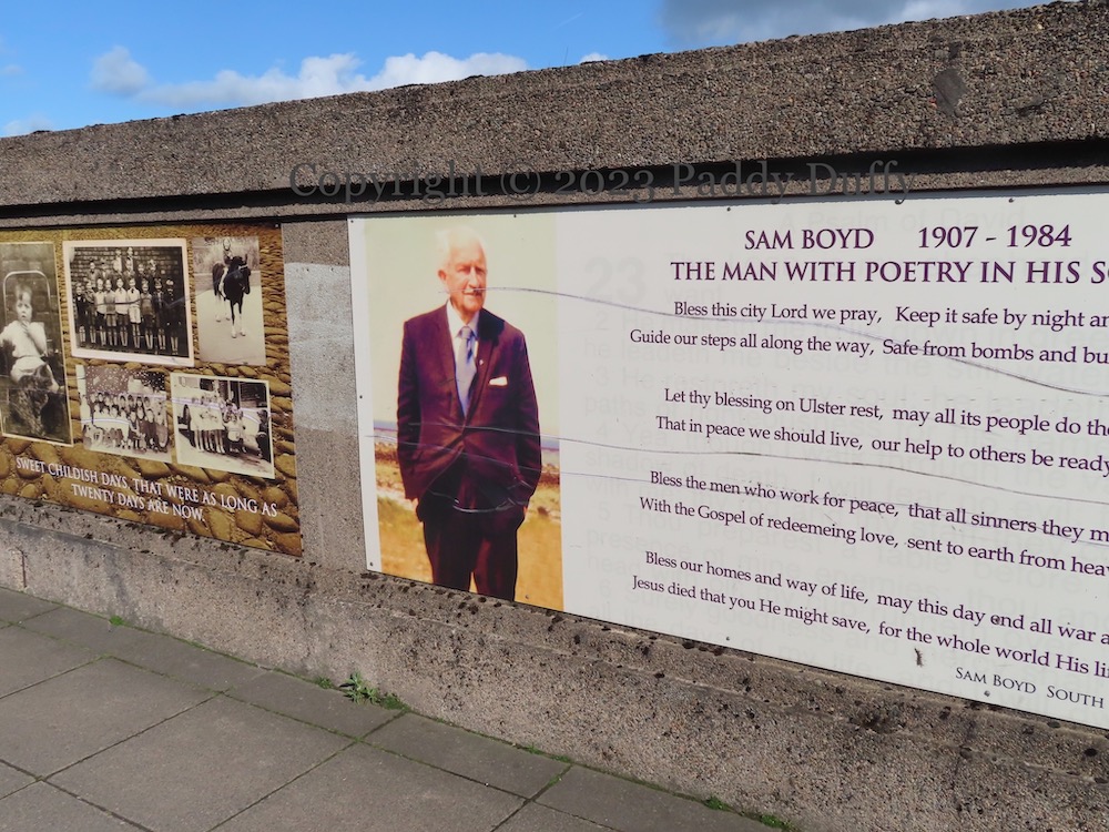 2023 South Belfast Carousel Purple Flowers —Collingwood Ave, Belfast Purple Face —Collingwood Ave, Belfast Dr Seuss/Tiger —Carmel St, Belfast Sunflower —Harrow St, Belfast Ballynafeigh Says No —Walmer St, Belfast UDR —Carvue St, Belfast Social Housing —Cromac St, Belfast Citizens’ Assembly + Empty Homes — Cromac St, Belfast Portraits Of The Markets —Cromac St, Belfast Progress —Kilburn, Belfast 2nd Belfast Battalion —Kilburn St, Belfast South Belfast Volunteers —Kilburn, Belfast Five Boards —Donegall Rd, Belfast We Have What We Hold —Lwr Rockview St, Belfast Belle Of Belfast —Meridi St, Belfast Queens —Maldon St, Belfast Big Ribbo —Coolfin St, Belfast Big Ribbo + Bonfire —Coolfin St, Belfast Red Hand —Benburb St, Belfast Drumcree Lower Ormeau —Artana St, Belfast Tar Liom —Kinallan Ct, Belfast Key Workers —Balfour St, Belfast Noah Basketball —Balfour St, Belfast Key To World —Cooke St, Belfast UVF/Flanders —Frenchpark St, Belfast UDA —Rockview St, Belfast NHS —Kilburn St, Belfast Windsor Women —Ebor St, Belfast White Dragon —Botanic Ave, Belfast Juice Bar Shop Front —India St, Belfast Stretch —India St, Belfast Bout Ye? —University Sq Mews, Belfast Ha Ha Ha —Botanic Ave, Belfast Flowers —Mount Charles, Belfast Hello —Lisburn Rd, Belfast Praxis Care —Lisburn Rd, Belfast Flax Flowers —Ventry St car park, Belfast Linenopolis —Ventry St car park, Belfast Jeggy Nettle —Landseer St, Belfast Ormeau Road —Rushfield Ave, Belfast Ormeau Road —Rushfield Ave, Belfast The Vineyard —Ormeau Road, Belfast Fergie —Somerset St, Belfast Fergie/Bunelos —Somerset St, Belfast La Taqueria —Ormeau Rd, Belfast Tile Refinery —Blythe St, Belfast Sandy Row Remembers —Blythe St, Belfast Weavers To Winners —Blythe St, Belfast Going To School —Blythe St, Belfast Community —Blythe St, Belfast Cultural Expression 1 —Blythe St, Belfast Cultural Expression 2 — Blythe St, Belfast Find Harmony In Food —Surrey St, Belfast Flowers —Larkstone St, Belfast Covenant Day —Barrington Gdns, Belfast Hindu Man paint-bombed – Mt Aboo Pk, Belfast SBPB –Barrington Gdns, Belfast Ulster Stands With Israel –Donegall Rd, Belfast Forged Stout –Ventry St, Belfast Forged Stout sig –Ventry St, Belfast Gary McCannDonegall Rd, Belfast Mill WorkersDonegall Rd, Belfast Beautiful GameDonegall Rd, Belfast TitanicDonegall Rd, Belfast Korea Donegall Rd, Belfast BlitzDonegall Rd, Belfast Blitz/MillsDonegall Rd, Belfast FamiliesDonegall Rd, Belfast Sam BoydDonegall Rd, Belfast MagennisDonegall Rd, Belfast Millie Donegall Rd, Belfast SuffragettesDonegall Rd, Belfast Air FieldsDonegall Rd, Belfast Air ForceDonegall Rd, Belfast 100 Years RAFDonegall Rd, Belfast Well Women’s GroupAbingdon St, Belfast Micky GilbrideRutland St, Belfast Sea FoodApsley St, Belfast Horsey HillHarrow St, Belfast
