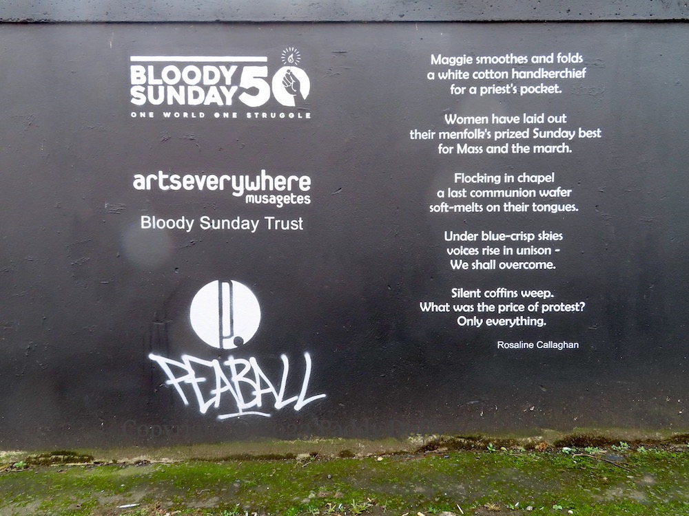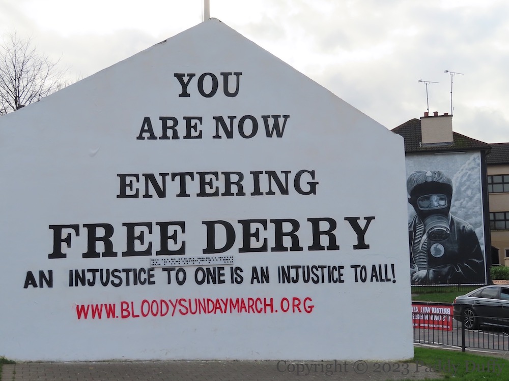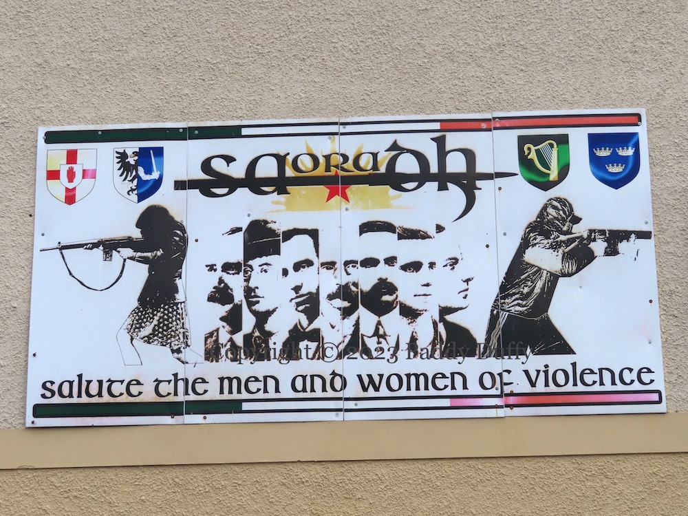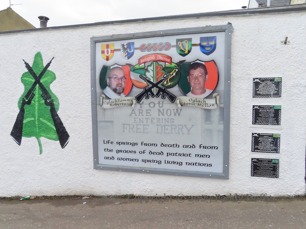 2023 Derry Saracen —Rossville St, Derry Fr Daly Garden —Rossville St, Derry Hume/King —Rossville St, Derry Hunger Strikers —Rossville St, Derry Peace Wall —Rossville St, Derry Boards And Mural —Rossville St, Derry Boards And Dove —Rossville St, Derry Hanky —Rossville St, Derry Hanky Poem —Rossville St, Derry Boards And Murals —Rossville St, Derry Third Of May —Rossville St, Derry One Man, One Vote —Rossville St, Derry Two Murals —Rossville St, Derry Che —Fahan St, Derry Body Carried —Rossville St, Derry Bernadette Devlin —Rossville St, Derry Petrlol Bomber —Rossville St, Derry Broken Armalite —Rossville St, Derry Bloody Sunday Victims —Rossville St, Derry Saoradh —Rossville St, Derry Mandela And Sands — Rossville St, Derry Free Gaza —Rossville St, Derry All Children Have Rights —Rossville St, Derry Donncha —Rossville St, Derry Starry Plough —Rossville St, Derry Sovereignty —Rossville St, Derry Abstract —Lecky Rd, Derry Colmchille w —Lecky Rd, Derry Stop Extradition And Murals —Rossville St, Derry Gaelscoil — Lecky Rd, Derry Billboards —Rossville St, Derry Easter Lily —Rossville St, Derry Free Derry/Murals —Lecky Rd, Derry Garden Of Remembrance —Rossville St, Derry H Block Memorial —Rossville St, Derry H Block/Free Derry —Rossville St, Derry H Block/Free Derry —Rossville St, Derry Hand And Dove —Rossville St, Derry Spirit Of Freedom —Westland St, Derry Derry Brigade —Westland St, Derry Palestine Solidarity —Westland St, Derry Mna Na hÉireann —Westland St, Derry Children Of The Troubles 1 —Westland St, Derry Children Of The Troubles 2 —Westland St, Derry Roberts/Mellon —Westland St, Derry Ireland —Stanleys Wk, Derry Doire —Stanleys Wk, Derry Jesus —Moss Pk, Derry Amelia Earhart —Fairview Wk, Derry Earhart info —Fairview Wk, Derry Corner Buildings —Fairview Wk, Derry Earhart Building —Fairview Wk, Derry Derry Girls —Orchard St, Derry Jon Clifford —Marlborough Tce, Derry Child With Beanie —Lecky Rd, Derry Mill Factory —Lecky Rd, Derry Faces —Lecky Rd, Derry Faces 2 —Lecky Rd, Derry Black And White —Lecky Rd, Derry Brandywell —Lecky Rd, Derry Derry Brigade —Lecky Rd, Derry Derry Brigade Lily —Lecky Rd, Derry Engage In Your Community —Lecky Rd, Derry Sr Clare Crockett —Lecky Rd, Derry Sr Clare Crockett info —Lecky Rd, Derry Dalai Lama —Gt James St, Derry Know Your Roots — Gt James St, Derry Puffin —Gt James St, Derry Hume —Gt James St, Derry Planting —Butchers Gate, Derry Figure —Strand Rd, Derry Bird On Skull —Strand Rd, Derry Great Hunger — William St, Derry Starry Plough —Chamberlain St, Derry Balloon –Trench Rd, Derry We’re Different –Trench Rd, Derry Kevin Lynch —Main St, Dungiven Lynch plaque —Main St, Dungiven