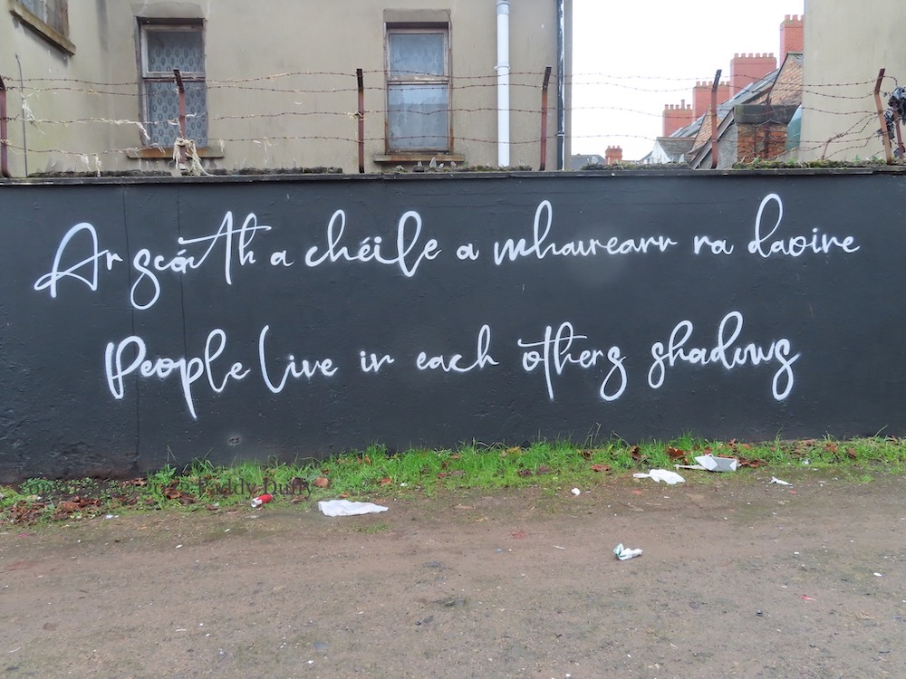 Update: added to the side wall “Ar scáth a chéıle a mhaıreann na daoıne”, here translated as “People live in each other’s shadows.”