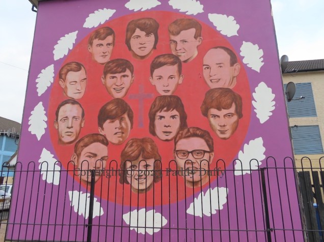 The mural is part of the Bogside Gallery (Visual History), painted by the Bogside Artists.