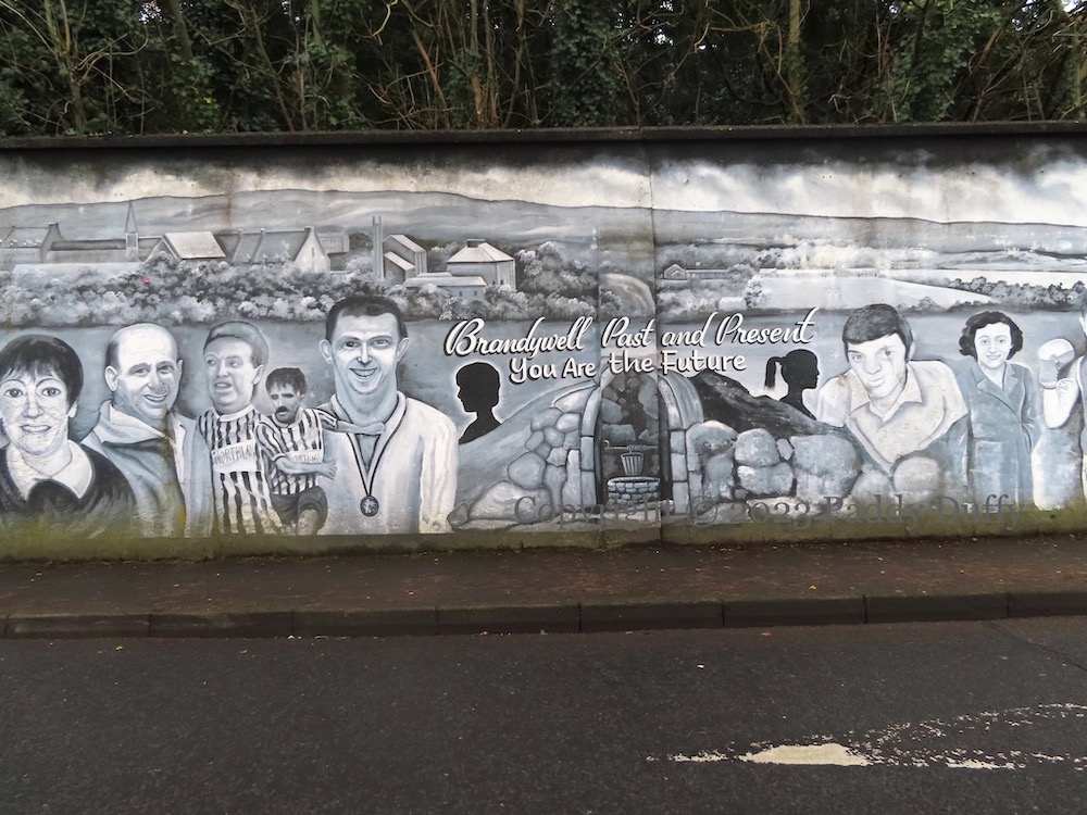 “You are the future” is the message from Long Tower Youth & Community Centre (Fb) to young people in the Brandywell. Sporting heroes of the past, especially boxing and soccer (for a mural of local clubs, see I Don’t Like Mondays) are featured in black and white.