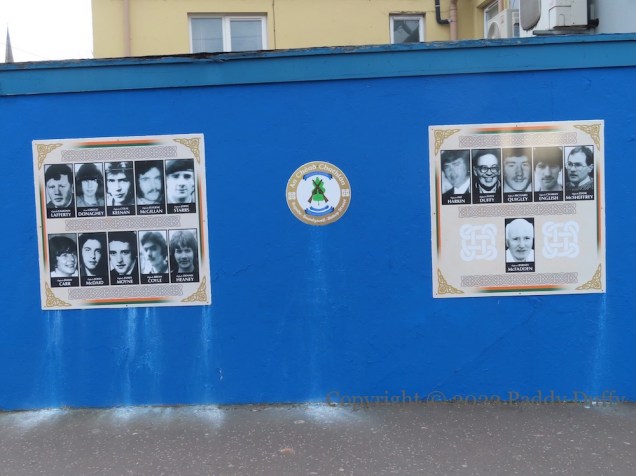 On the side wall, two new panels remember members of the IRA’s Derry brigade, replacing the single board seen in M07635.