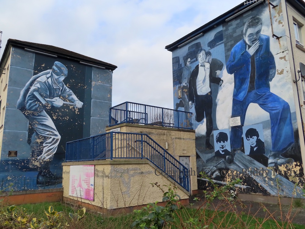 Operation Motorman and The Runner – two of the murals in The People’s Gallery by the Bogside Artists, at the junction of Rossville Street and Fahan Street in the Bogside, Derry.