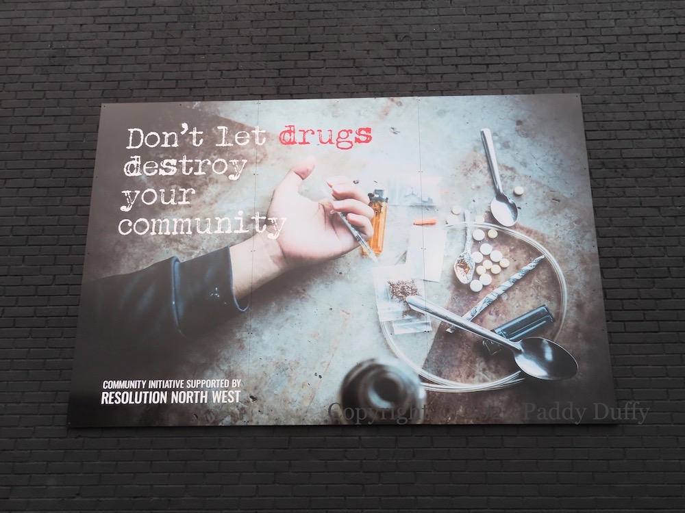 “Don’t let drugs destroy your community.” “Community initiative supported by Resolution North West.”