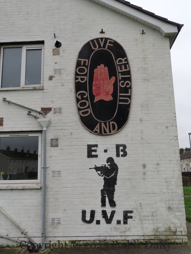 Here is a gallery of UVF stencils and boards in the Westwinds estate. Despite being in Newtownards, the UVF here is allied with the East Belfast brigade, rather than the North Down brigade – see Belfast Live for background.