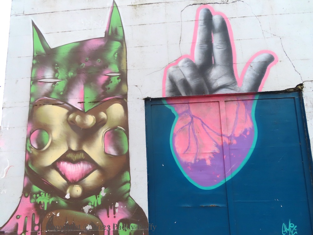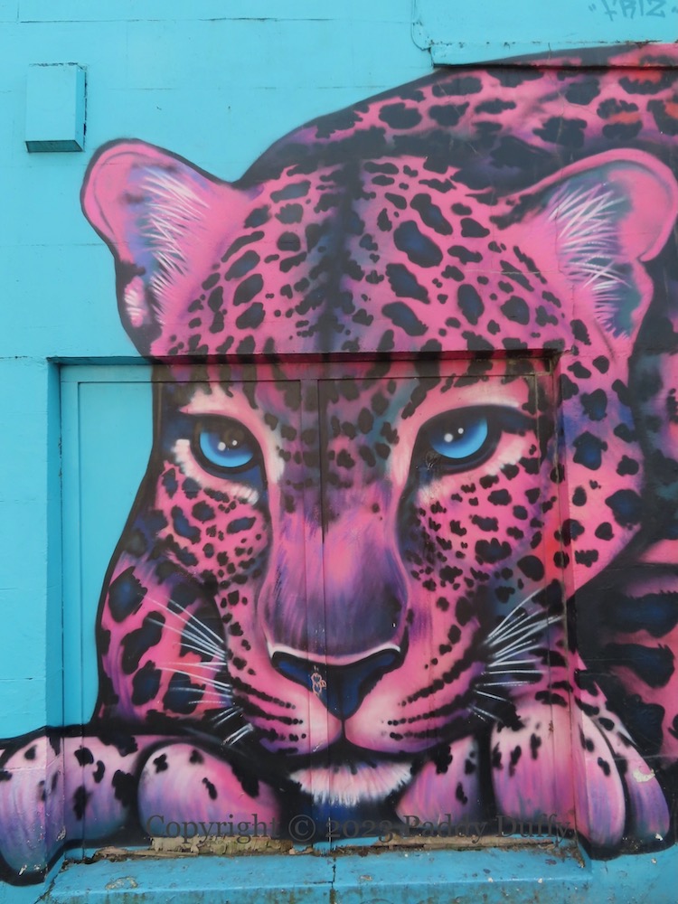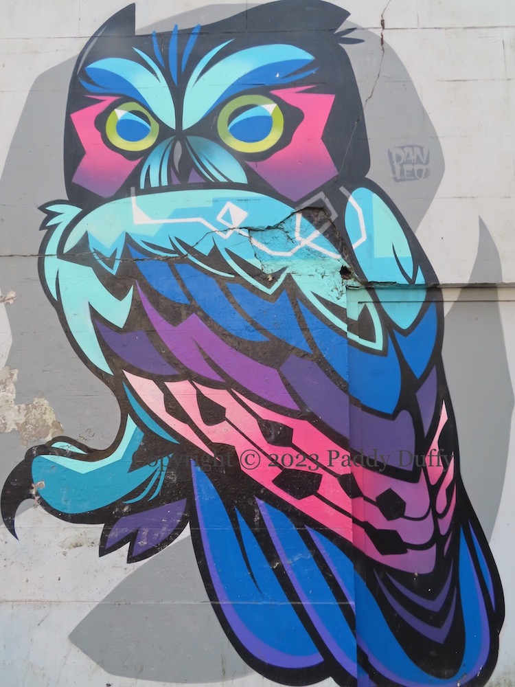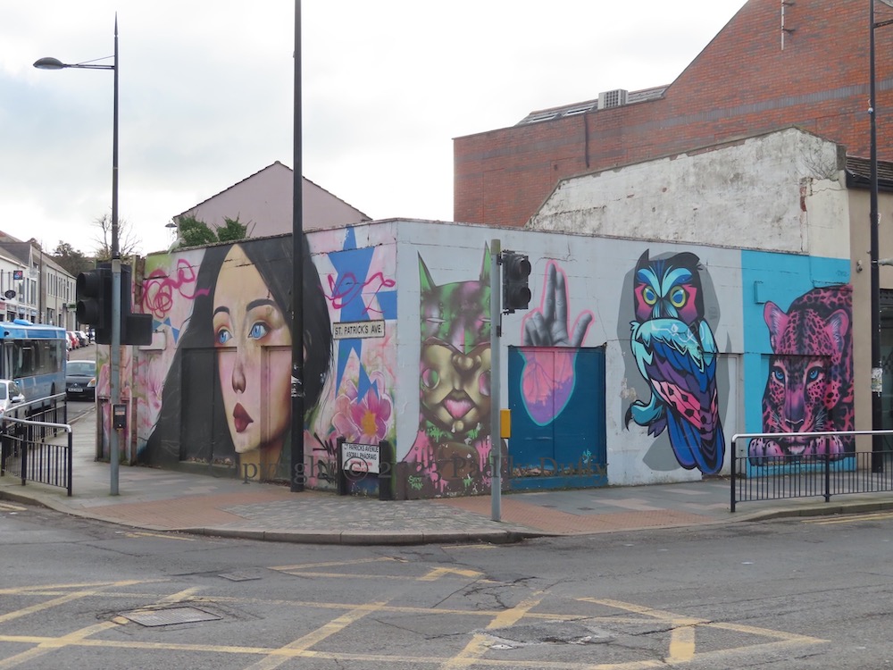 The Downtime summer festival is held annually in Downpatrick in August (covid-permitting) (Fb). The 2019 event included street art at the junction of St Patrick’s Avenue and Market Street. From left to right (top to bottom in this post), the art is by DMC & JMK (ig), KVLR (ig), emic (ig), Dan Leo (ig), Friz (ig).