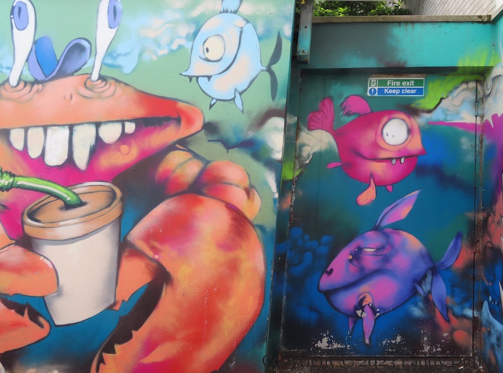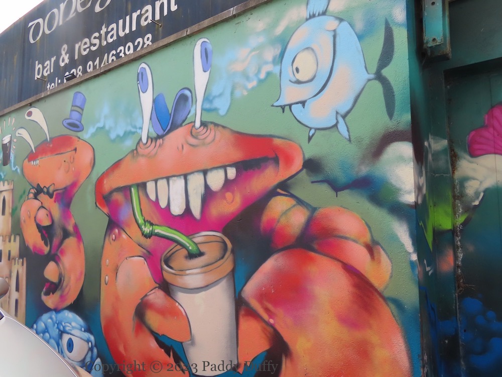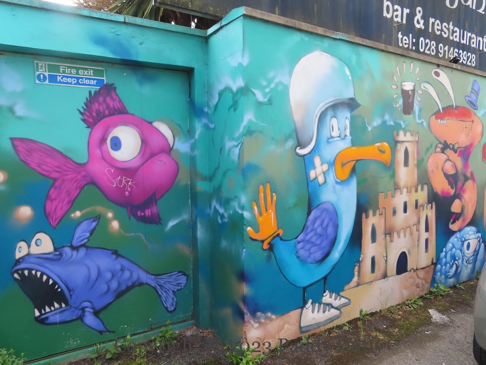 Street art by KVLR (ig) on an outside wall of Donegan’s bar and restaurant on the Albert Street side of Holborn Square, Bangor.
