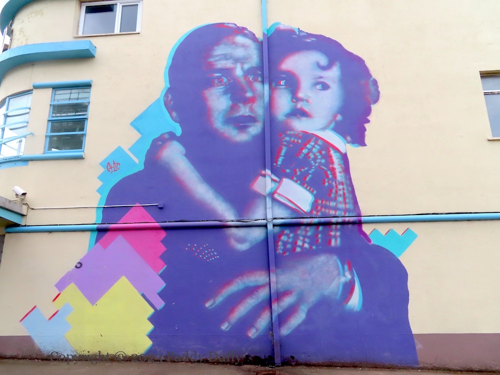 The 3-D mural by emic (ig) on the Pim’s Avenue side of the theatre reproduces the publicity photo shown below.