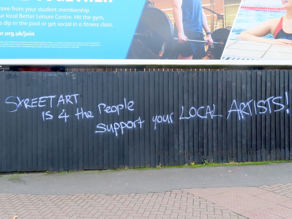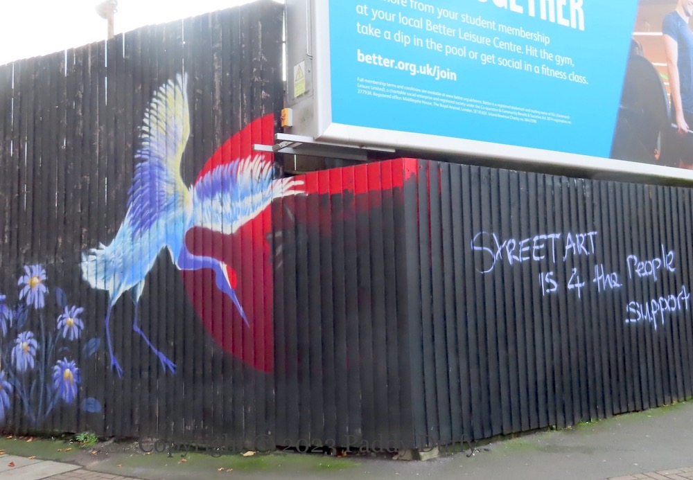 Artist HMC expressed her disappointment, though noted that “street art is never permanent, it’s meant to be painted over by future artists or graff writers” (ig). Adam Turkington, director of Seedhead Arts, likewise decried the obliteration to the Telegraph, saying, “Who controls the aesthetic of our city? … Are we not allowed to have some beautiful art that’s not trying to sell us things?”