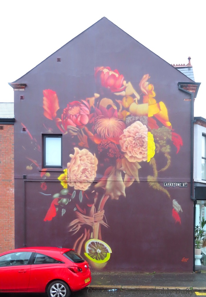 In Larkstone Street, south Belfast, on the side wall of LNV Home (web). Official title, “The Garaden”.
