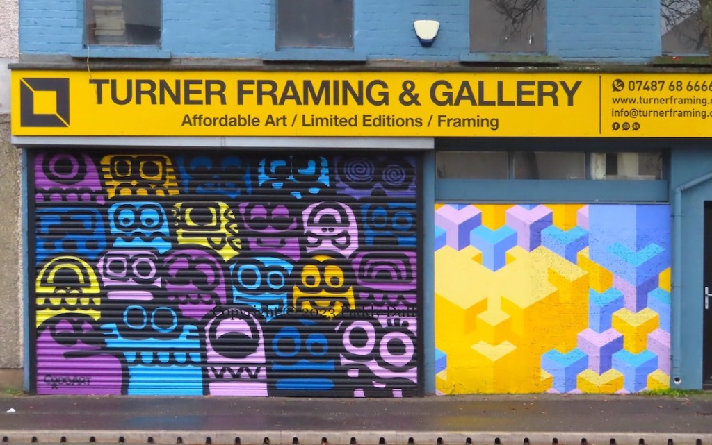 Affordable Art, Limited Editions 2023-11-262024-08-27Extramural Activity A gallery of Codo (ig) faces the shutters of Turner Framing (web), next to Rob Hilken’s (ig) flax flowers. Click image to enlargeCopyright © 2023 Paddy DuffyT03796 T03795 T03794 [T03797] May 2023 and Jan 2022 Share this: Click to share on X (Opens in new window) X Click to share on Facebook (Opens in new window) Facebook Like Loading... Related