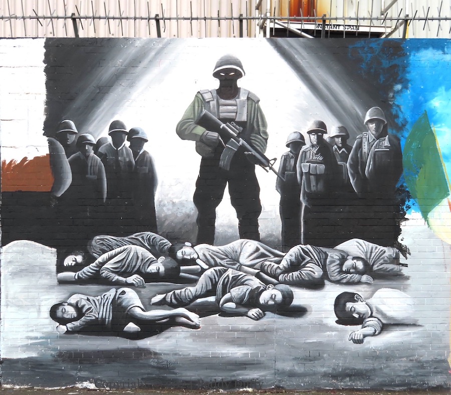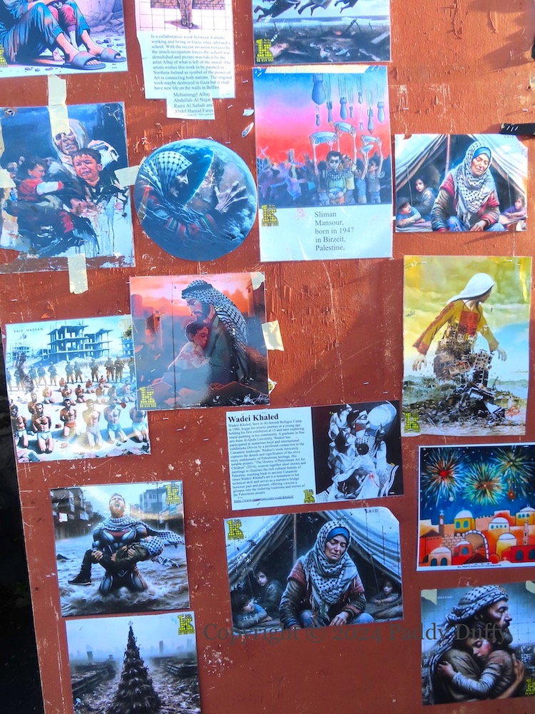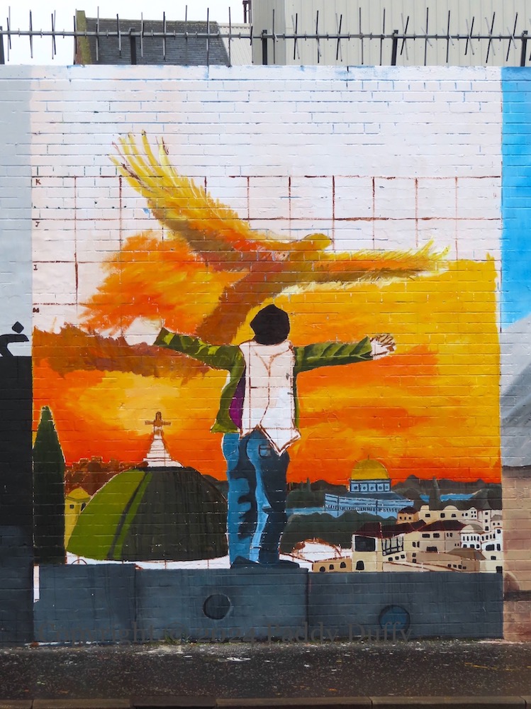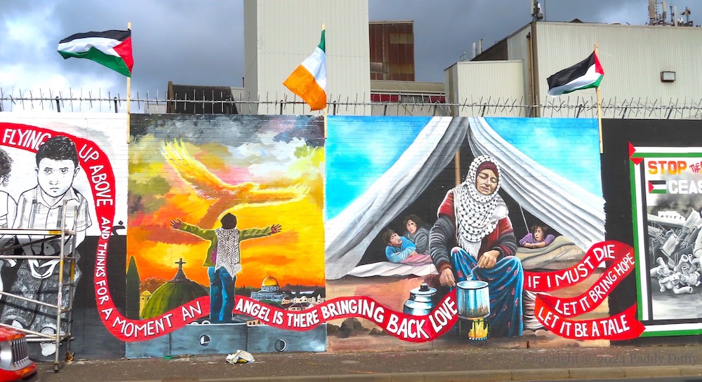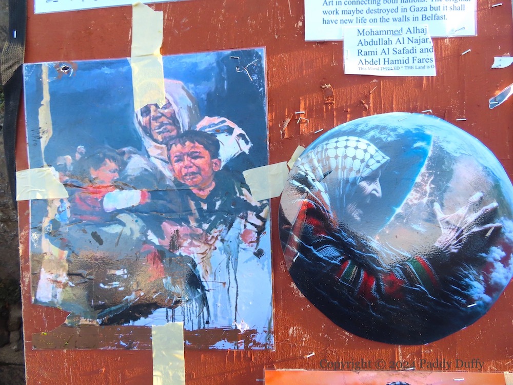 Khan Younis mass grave – Divis St, Belfastman and child – Divis St, BelfastBethlehem fireworks – Divis St, BelfastAshour children – Divis St, Belfastphoenix – Divis St, Belfast
