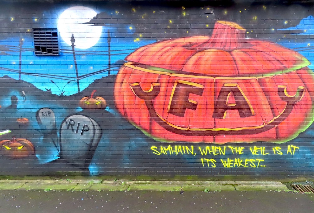 When The Veil Is At Its Weakest 2024-02-092024-11-08Extramural Activity “Samhaın, when the veil [between the physical and spiritual worlds] is at its weakest”. Some spooky Halloween-themed street art by FA [Foreign Assassins] crew in Tullycarnet. Click image to enlargeCopyright © 2024 Paddy DuffyT04018 [T04017] T04025 Share this: Click to share on X (Opens in new window) X Click to share on Facebook (Opens in new window) Facebook Like Loading... Related