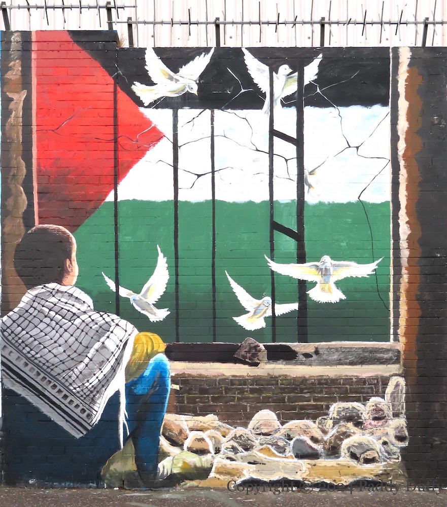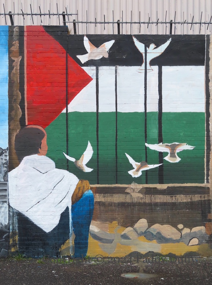 On the International Wall, west Belfast, part of the Painting For Palestine project (Fb).