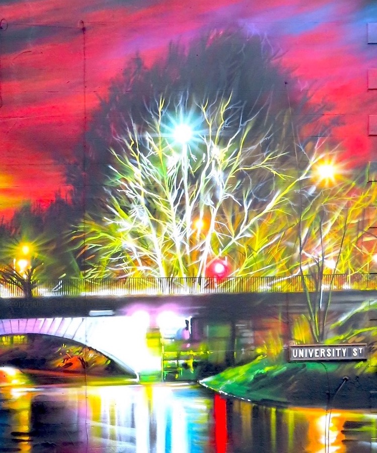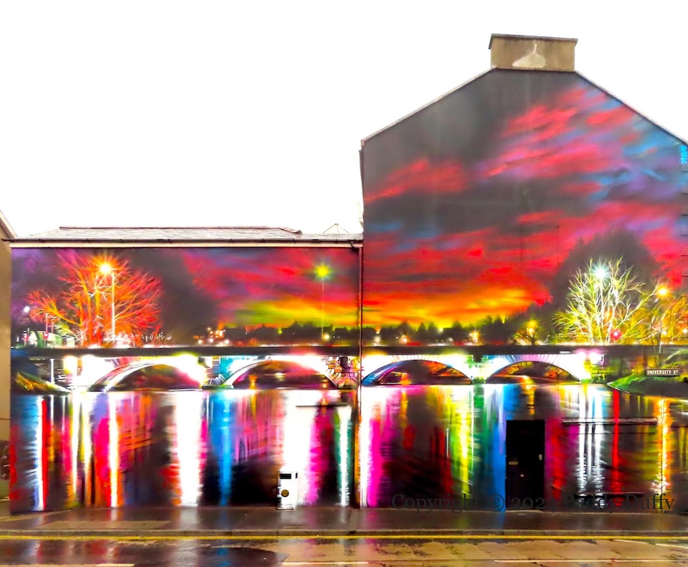 This mural of the bridge is by London artist DanK (ig), commissioned by the Lower Ormeau Traders’ Association using a Vibrant Business Destinations grant from the Council, funded by the Department For Communities ‘Revitalisation’ programme (of these, only Vibrant Businesses (web) appears to have an on-line presence). The mural will be officially launched today (Saturday March 16th) as part of a Spring Festival between noon and three. (Belfast Media)