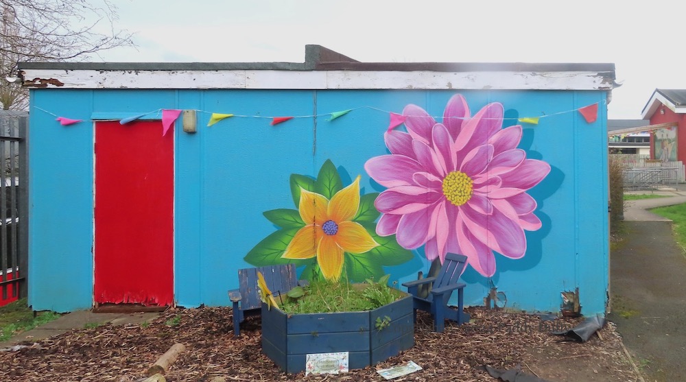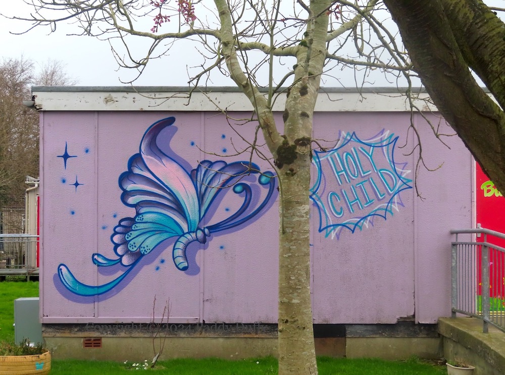These nature scenes in the grounds of Holy Child primary, in Creggan, were painted by RAZER (ig) as part of the Graffiti On The Wall initiative.