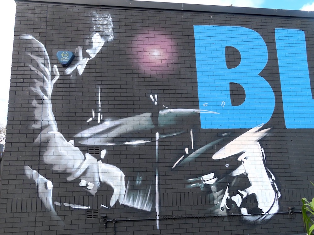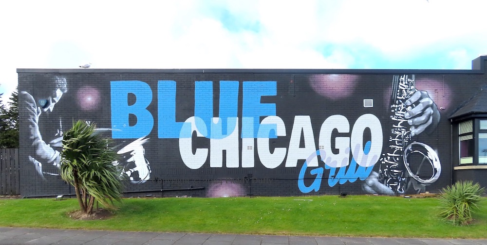 Here are some images of jazz musicians on the exterior walls of the Bangor location of the Blue Chicago Grill (Fb)