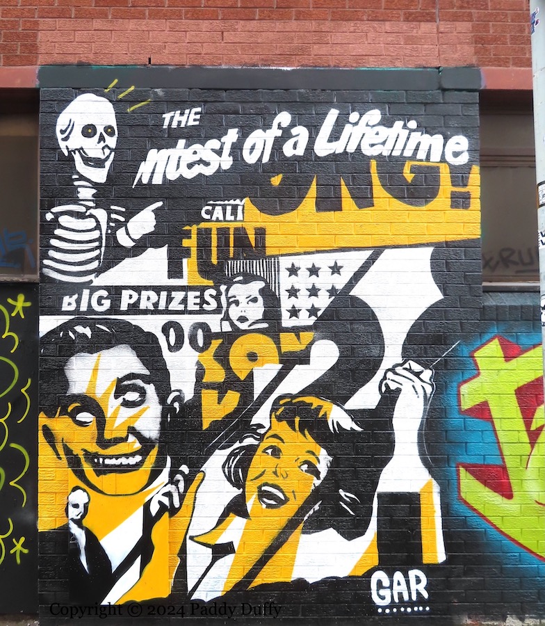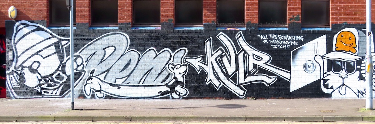 Here is a gallery of street art and writing/graffiti art from Union Street (above Kent Street) and Library Street, in Belfast city centre, painted for Hit The North 2024.