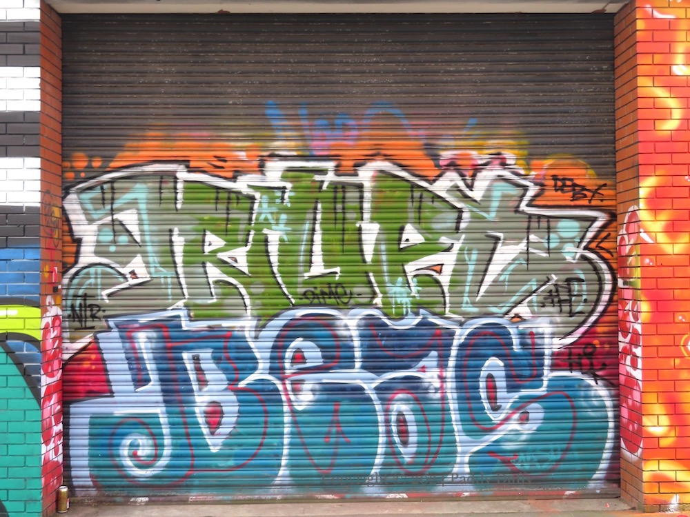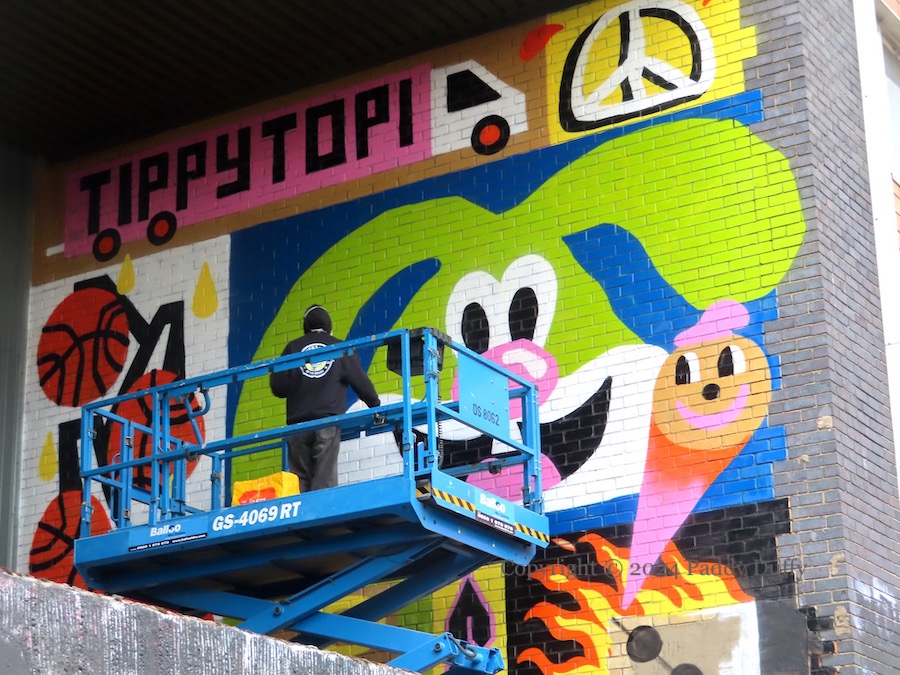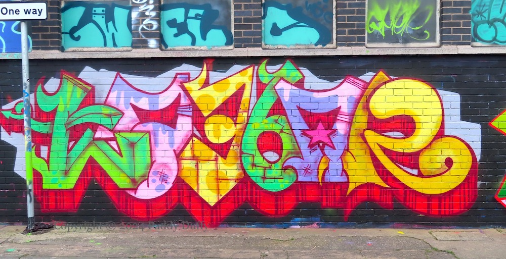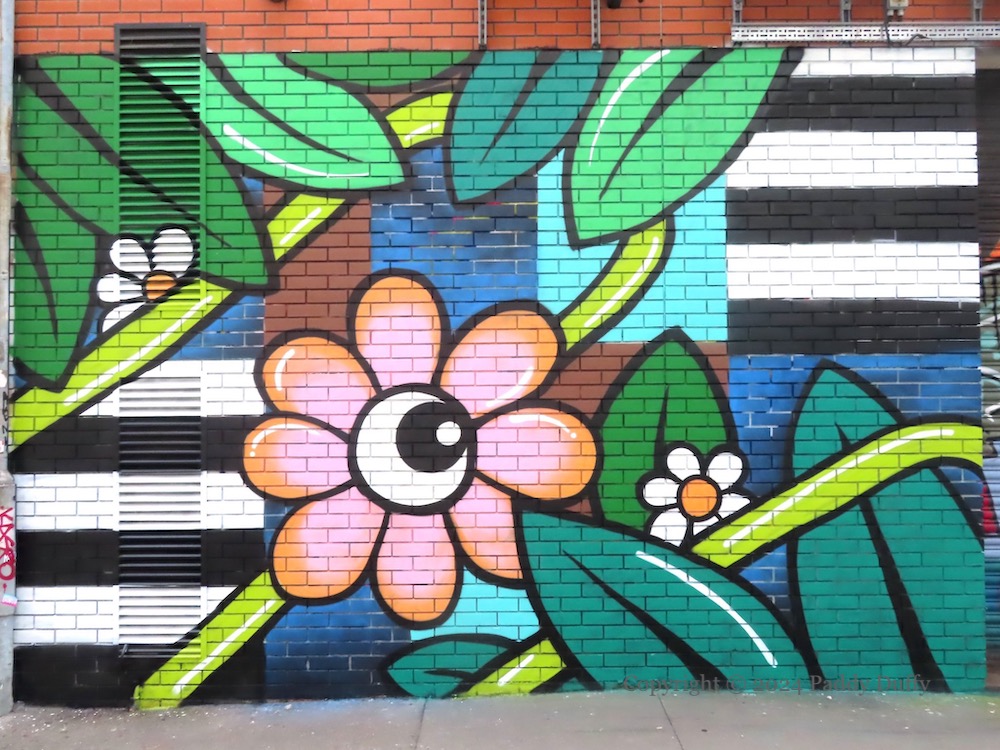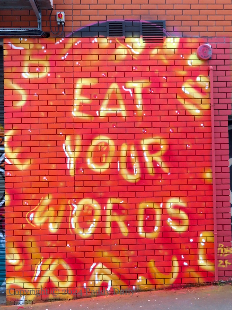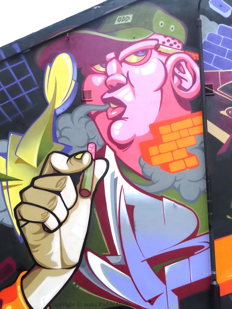 Here is a gallery of the new street art from Kent street above Union Street and on the north side of Kent Street below Union Street, painted for 2024’s Hit The North festival. For the south side of Kent Street, see Happy Accidents.