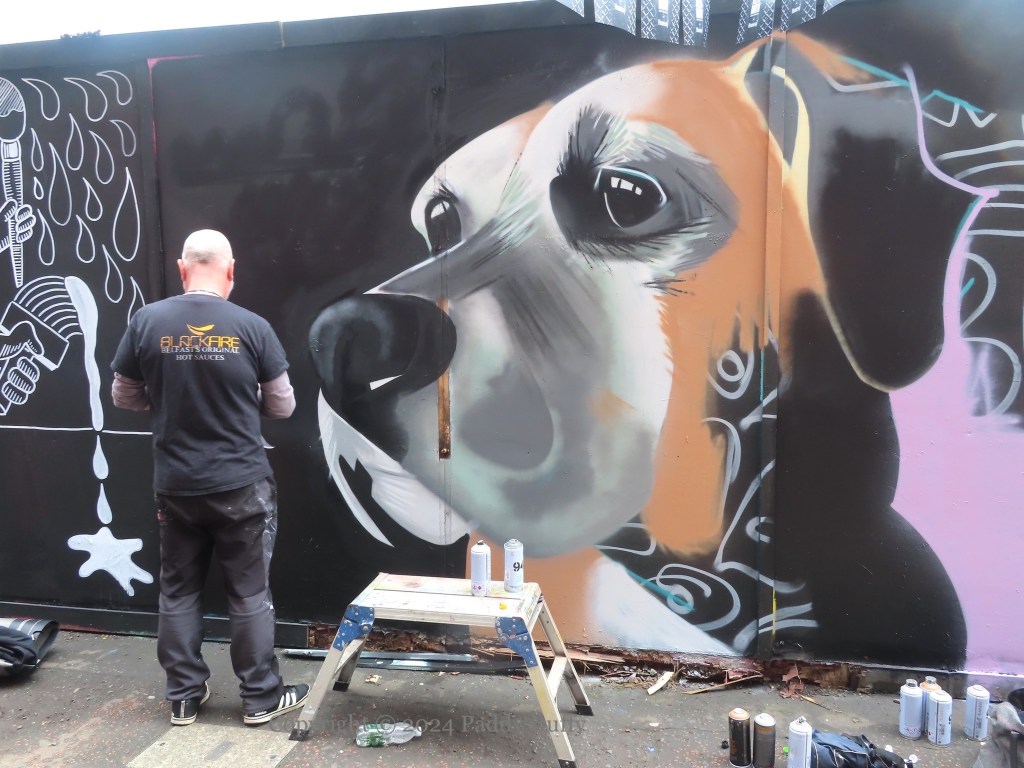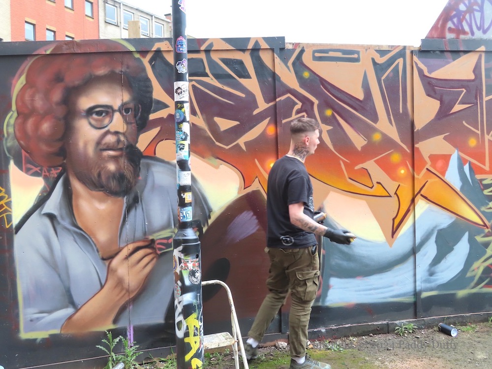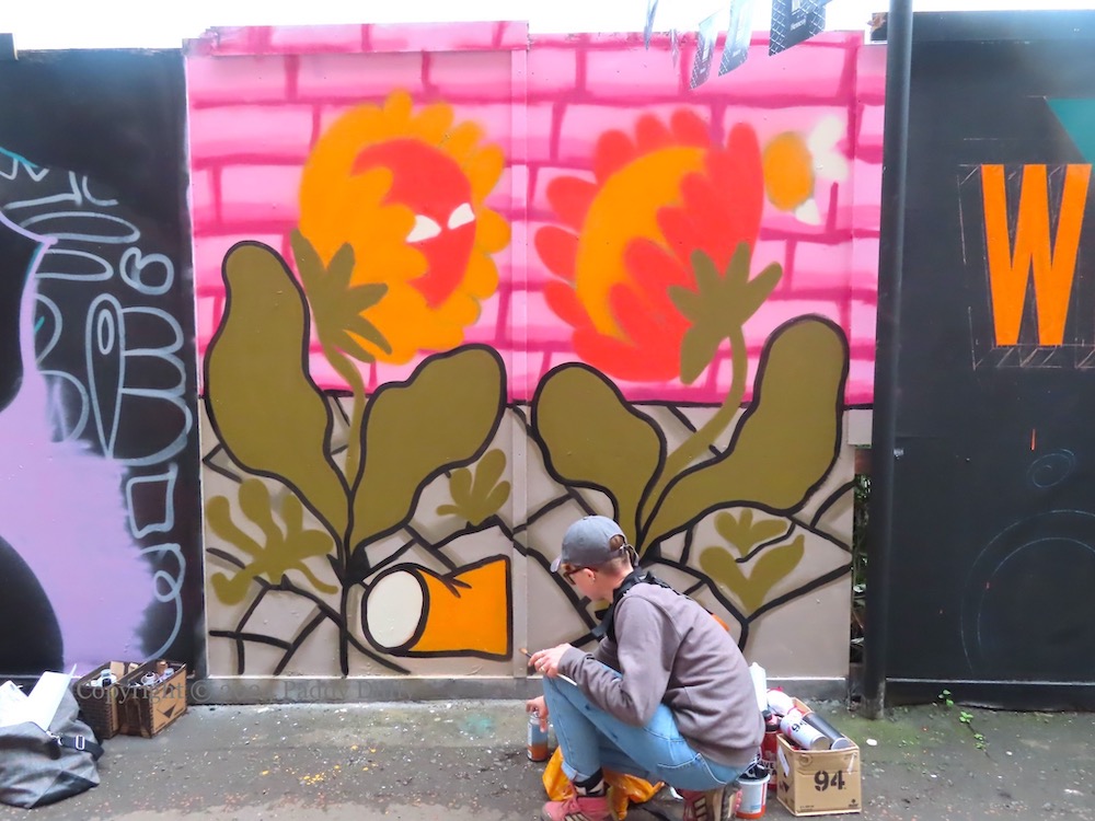 Here is a gallery of the new street art on the south side of Kent Street, produced for Hit The North (HTN24) this weekend. Images of completed works are from May 6th; in-progress shots are from the fifth.
