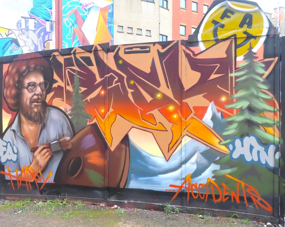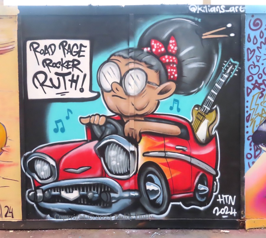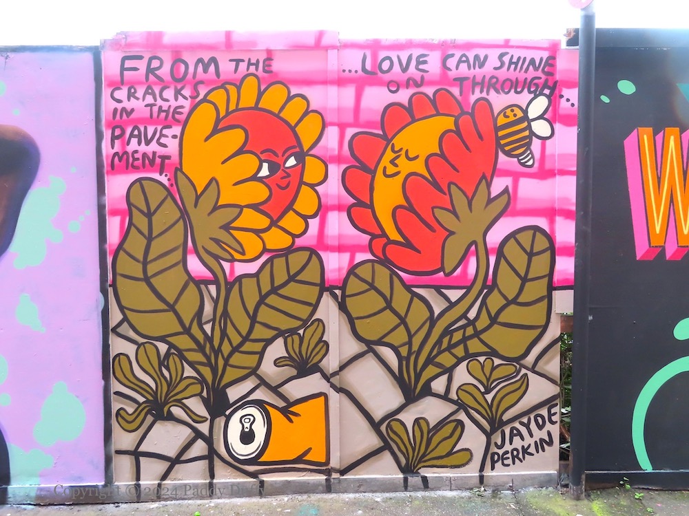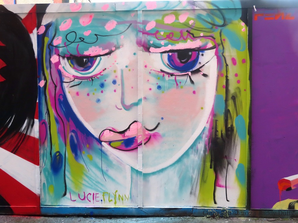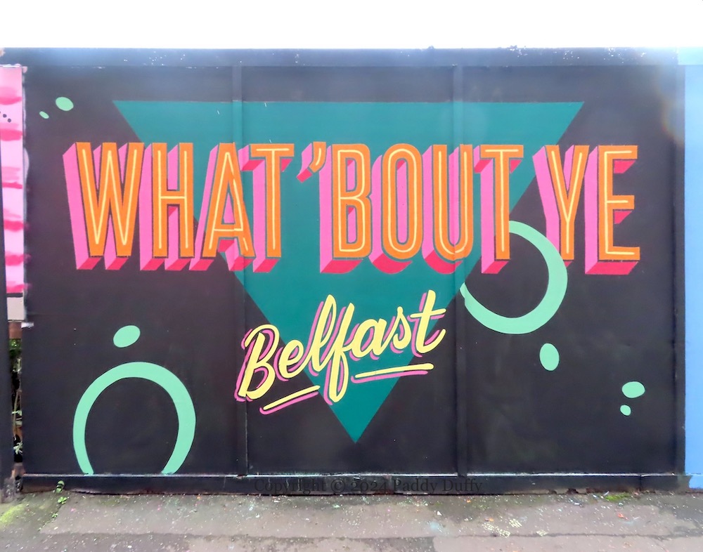 The tribute to Lyra McKee is still on the corner with Union Street. The piece by Mack Signs (ig), above, then follows, and, heading towards Royal Avenue, we have: