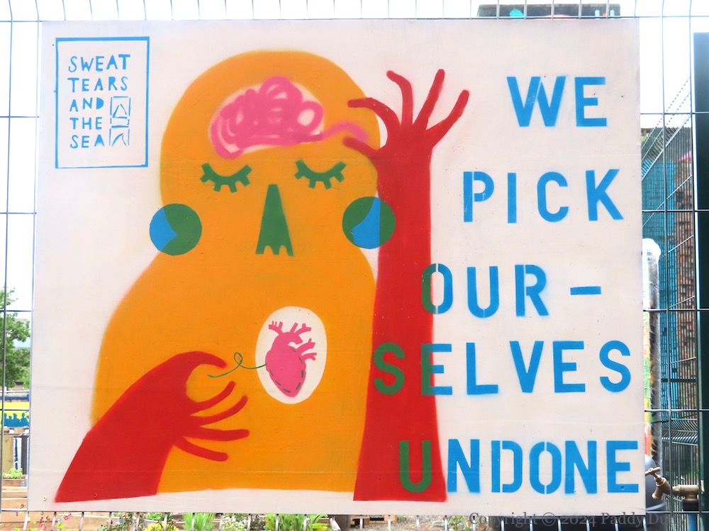 Two small boards on the fencing, by Sweat, Tears, And The Sea (ig) and Chain Gun Art (ig)