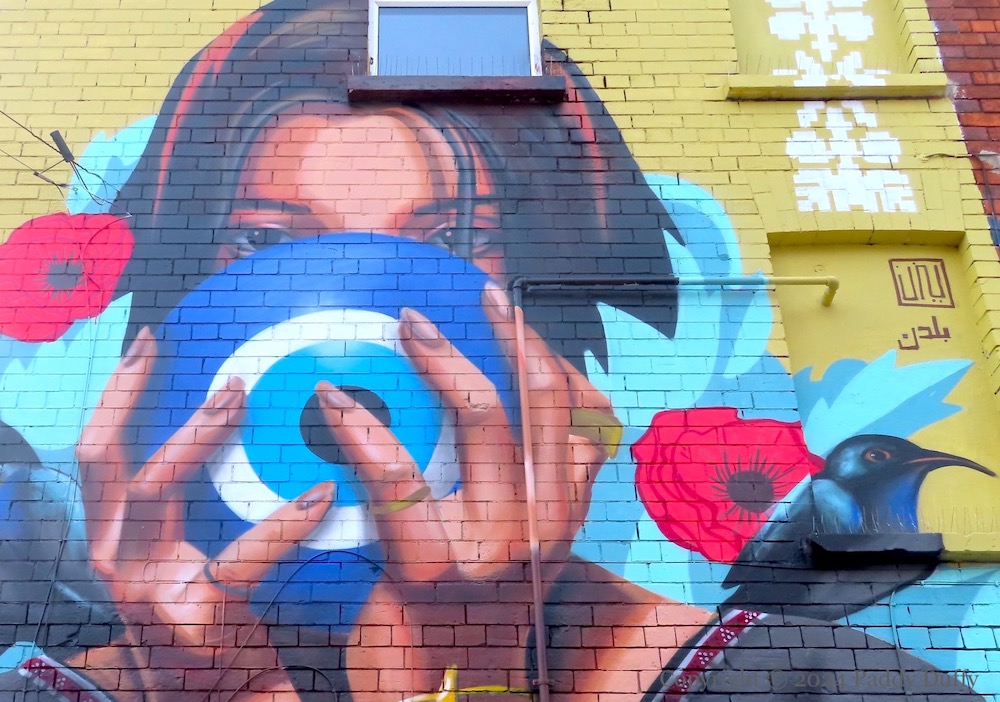 We should say that this is an ugly piece of street art, so that its beauty does not attract the evil eye. The model in this new street art for HTN24, painted by Jordanian artist Yazan Mesmar (ig), is holding an amulet in order to protect herself.