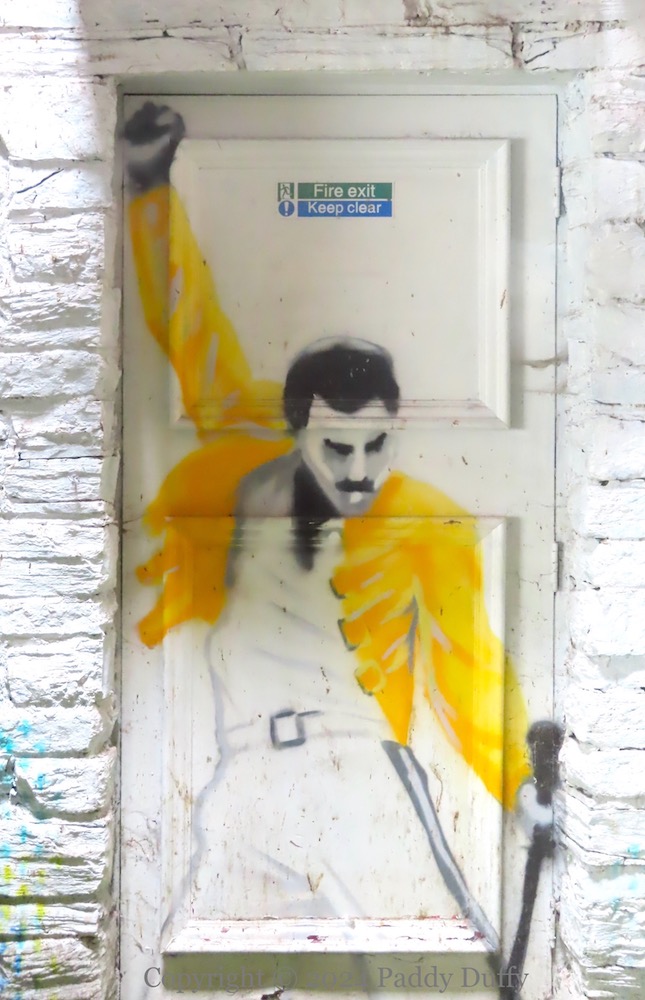 Here is a gallery of pop stars in Monaghan Street, Newry, by Pigment Space/MWAK (ig). From top to bottom: The Beatles, Freddie Mercury, David Bowie, Madonna, and Bob Marley.