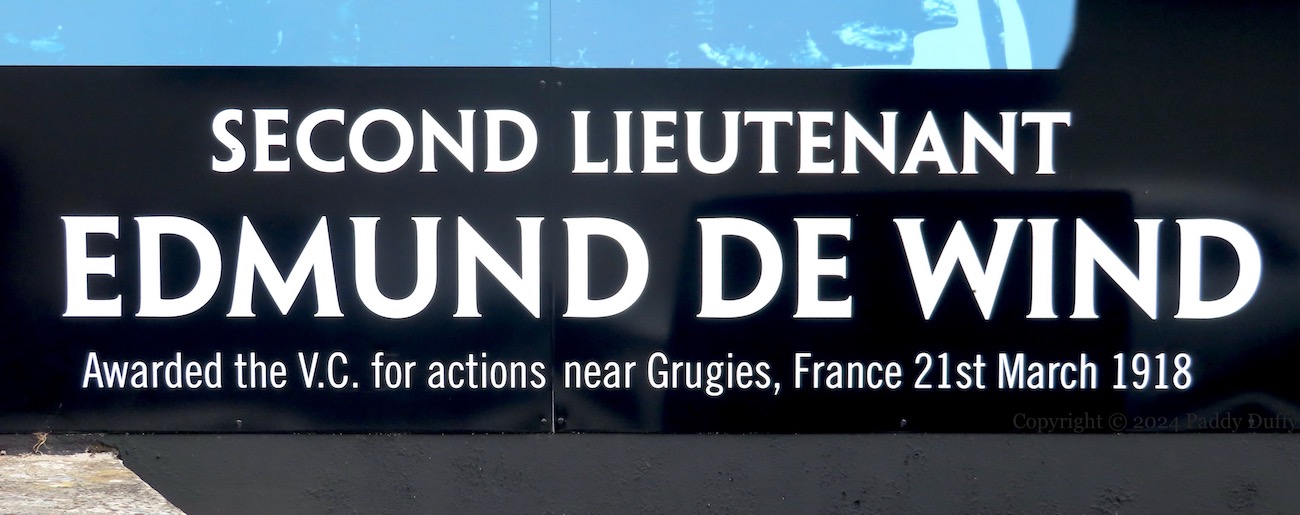 “Second Lieutenant Edmund De Lind. Awarded the VC for actions near Grugies, France 21st March 1918.”