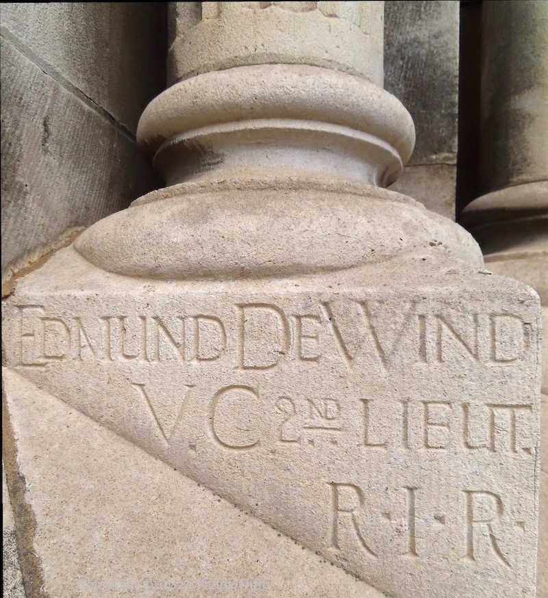 As is seen in the final two images, De Wind is remembered on one of the pillars outside St Anne’s in Belfast city centre.