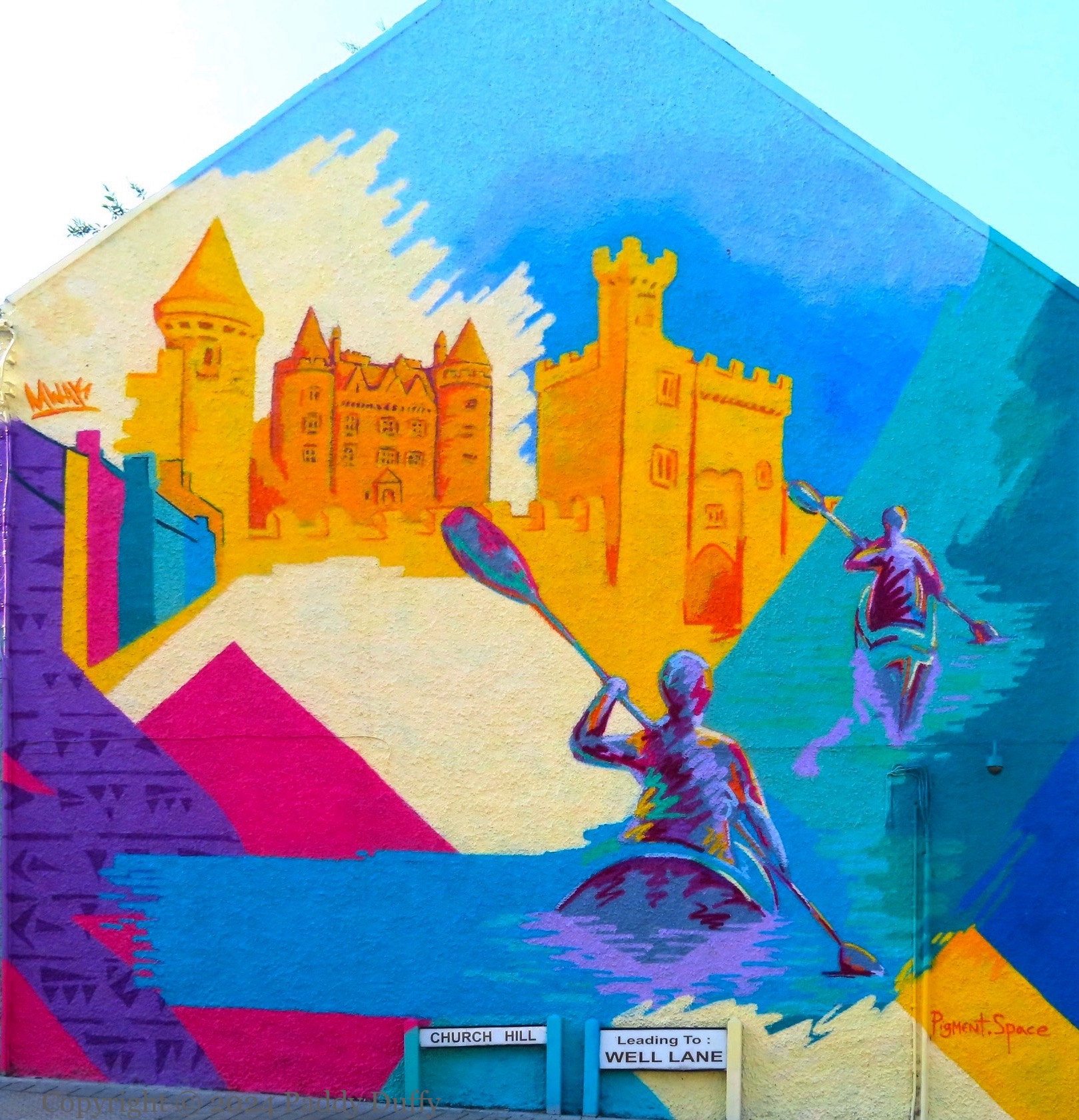 The art is by Pigment Space/MWAK (ig) in Church Hill, Killyleagh, on the side of the ‘Great Wall’ Chinese take-away.