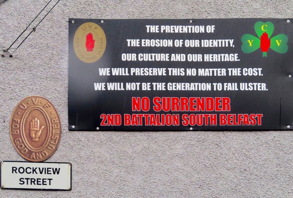“The prevention of the erosion of our identity, our culture and our heritage. We will preserve this no matter the cost. We will not be the generation to fail Ulster. No surrender. 2nd battalion South Belfast” “What we have we hold”