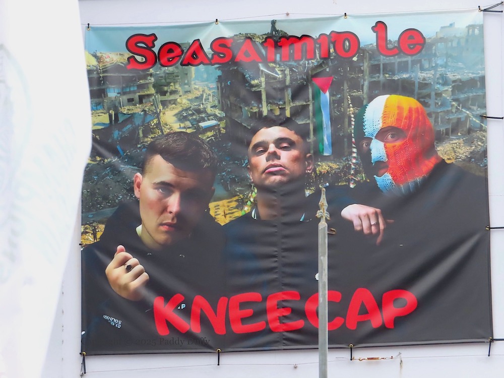 “We stand with Kneecap” – Kneecap yesterday announced a ten-date November tour of Scotland, Wales, and England, adding on to a jam-packed schedule of upcoming gigs that includes a string of European festivals and a tour of the United States. (The trio’s full schedule can be found at their web-site.) In between the France and Belgium dates, on August 20th, Lıam Óg Ó hAnnaıdh will make a different kind of appearance, in court, to face terrorism charges stemming from his display of a Hezbollah flag at a gig.